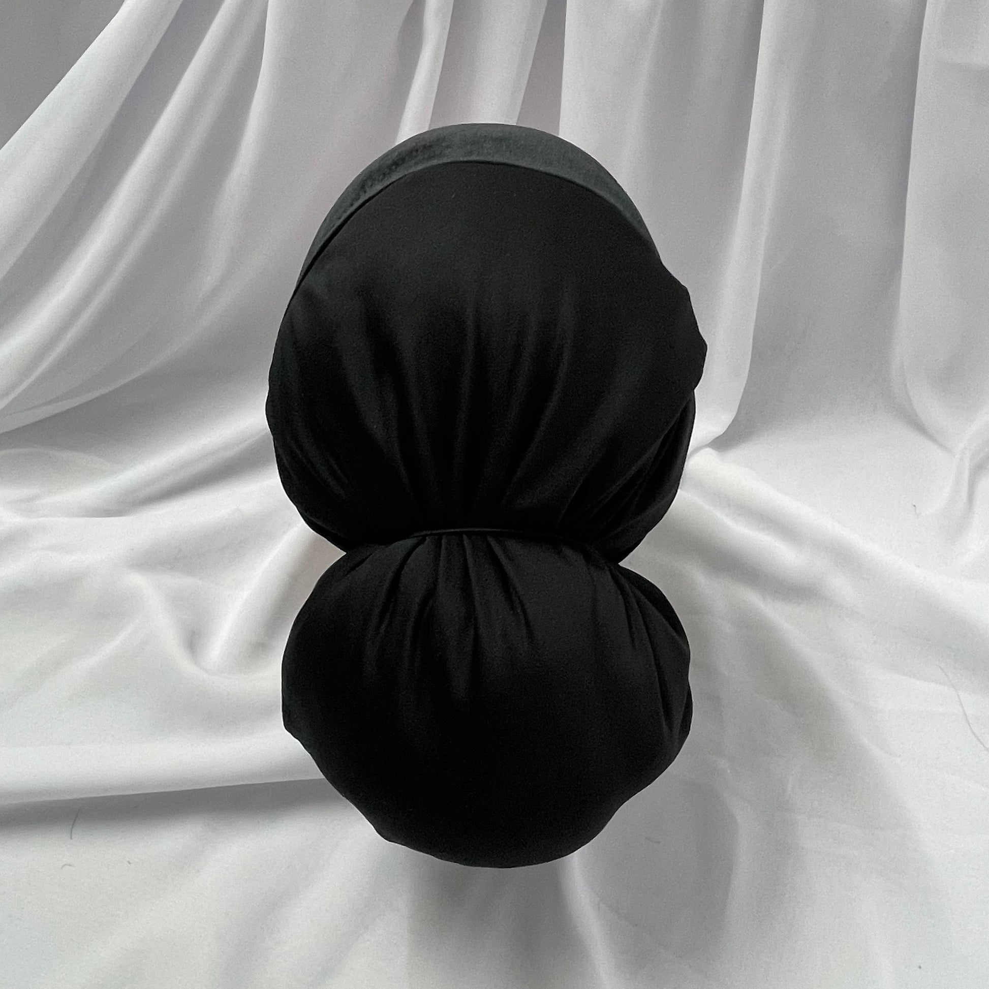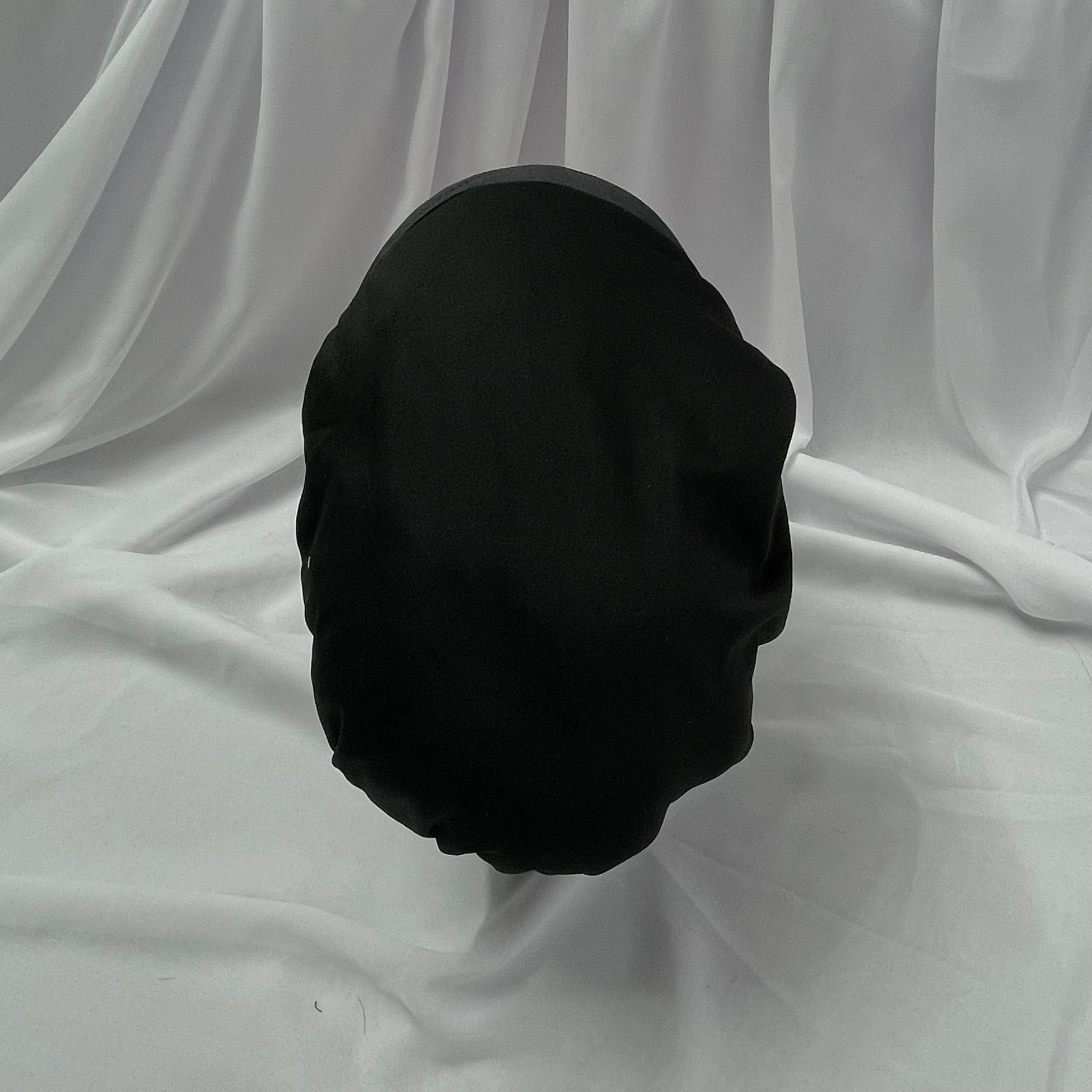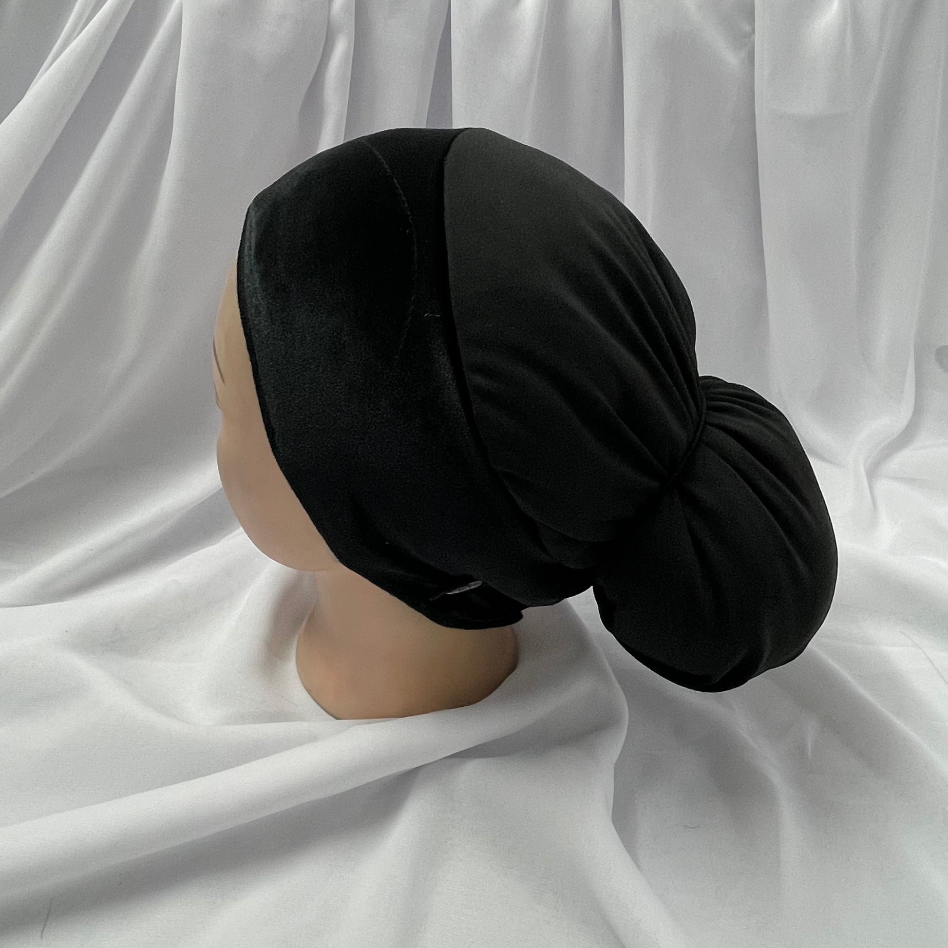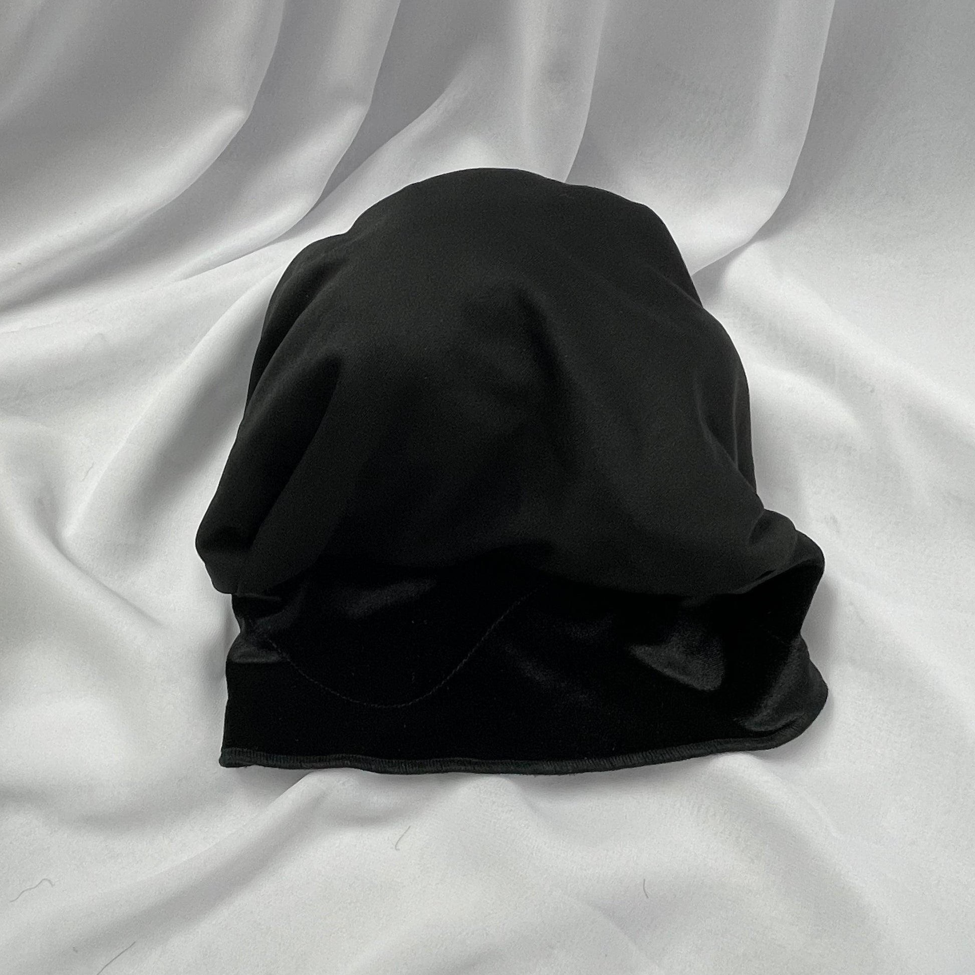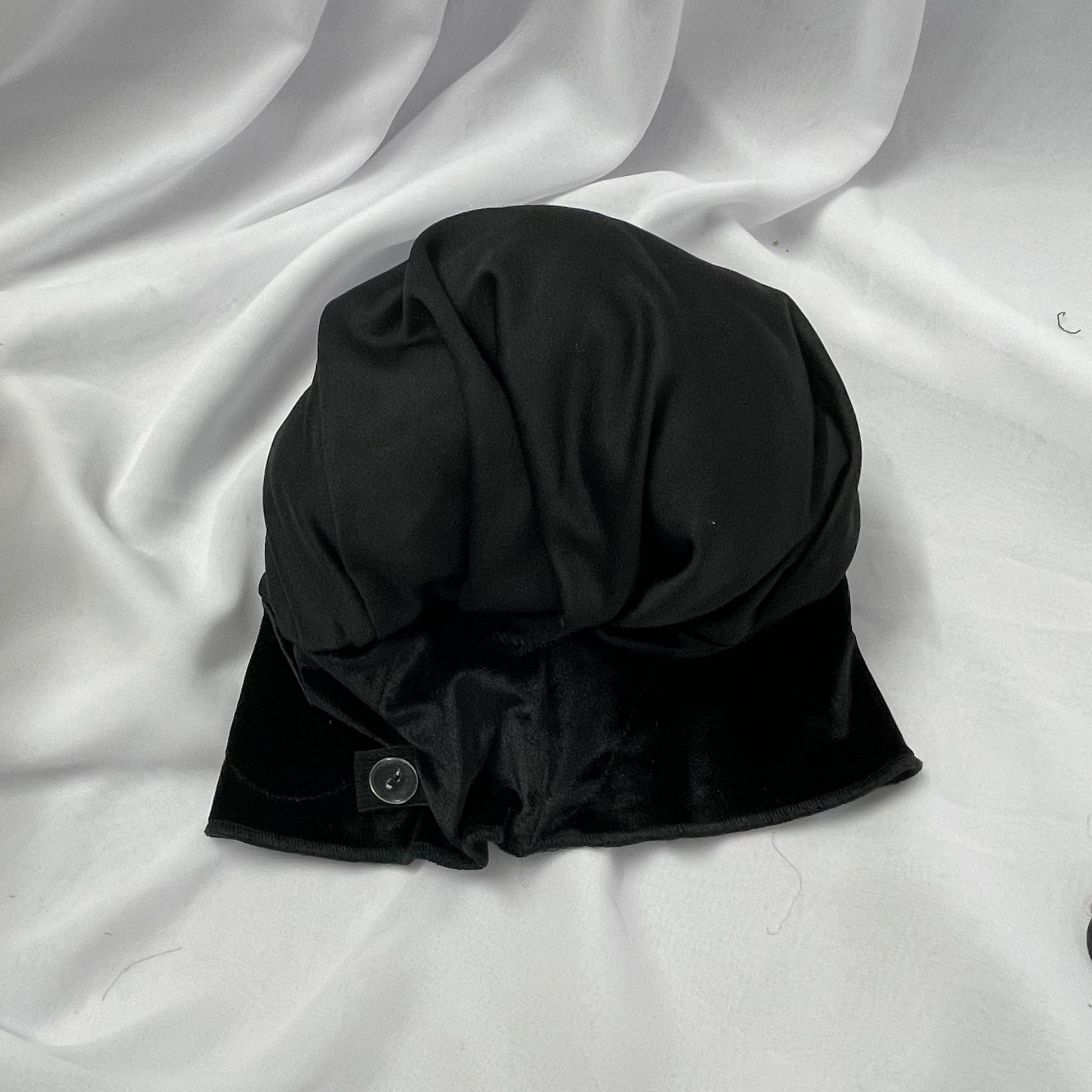 בובו נמוך משולב בצבע שחור עם כפתור להתאמה להיקף הראש ועם פתח לשליטה על הנפח החלק הקדמי פס מונע החלקה מקטיפה והחלק האחורי בד ניאון איכותי
