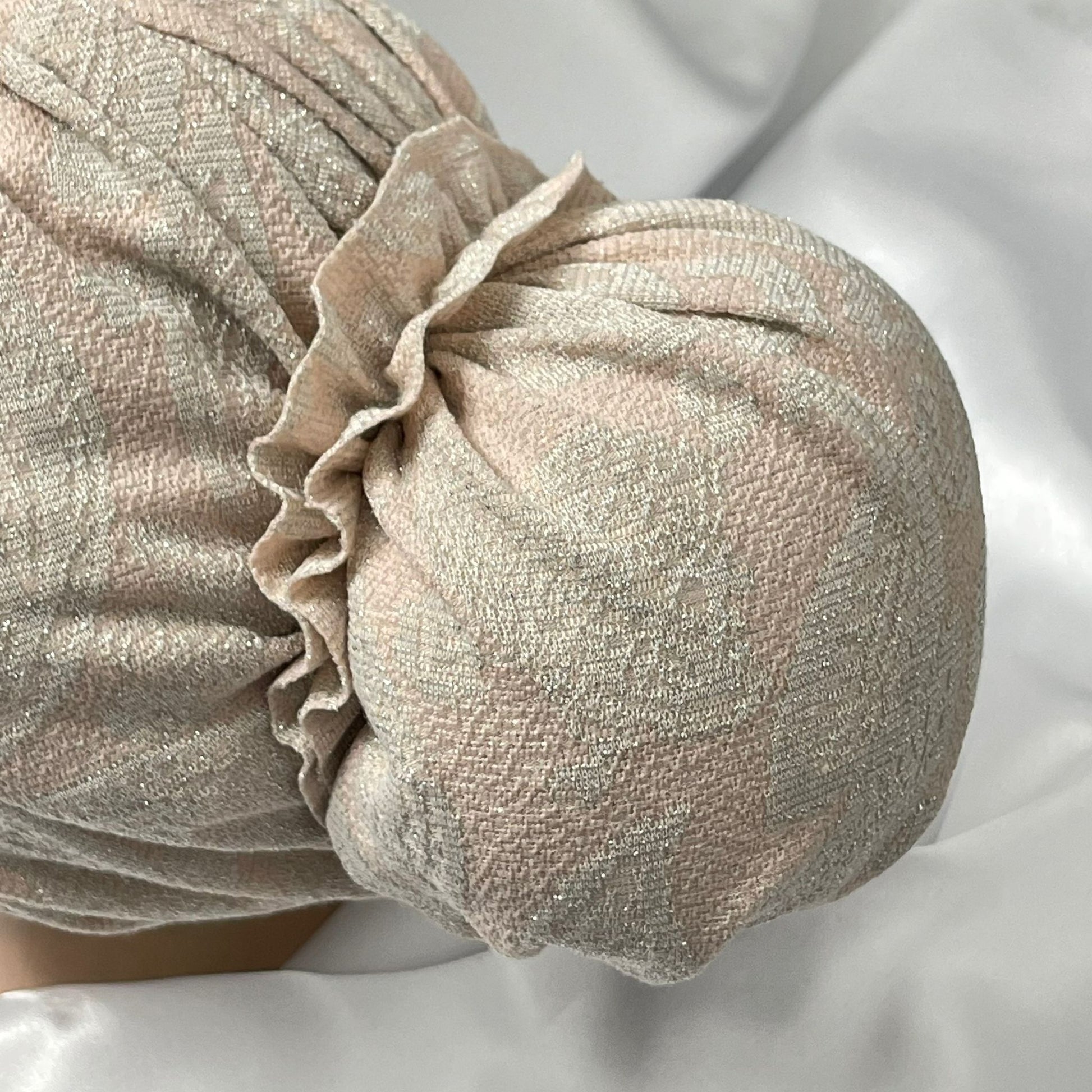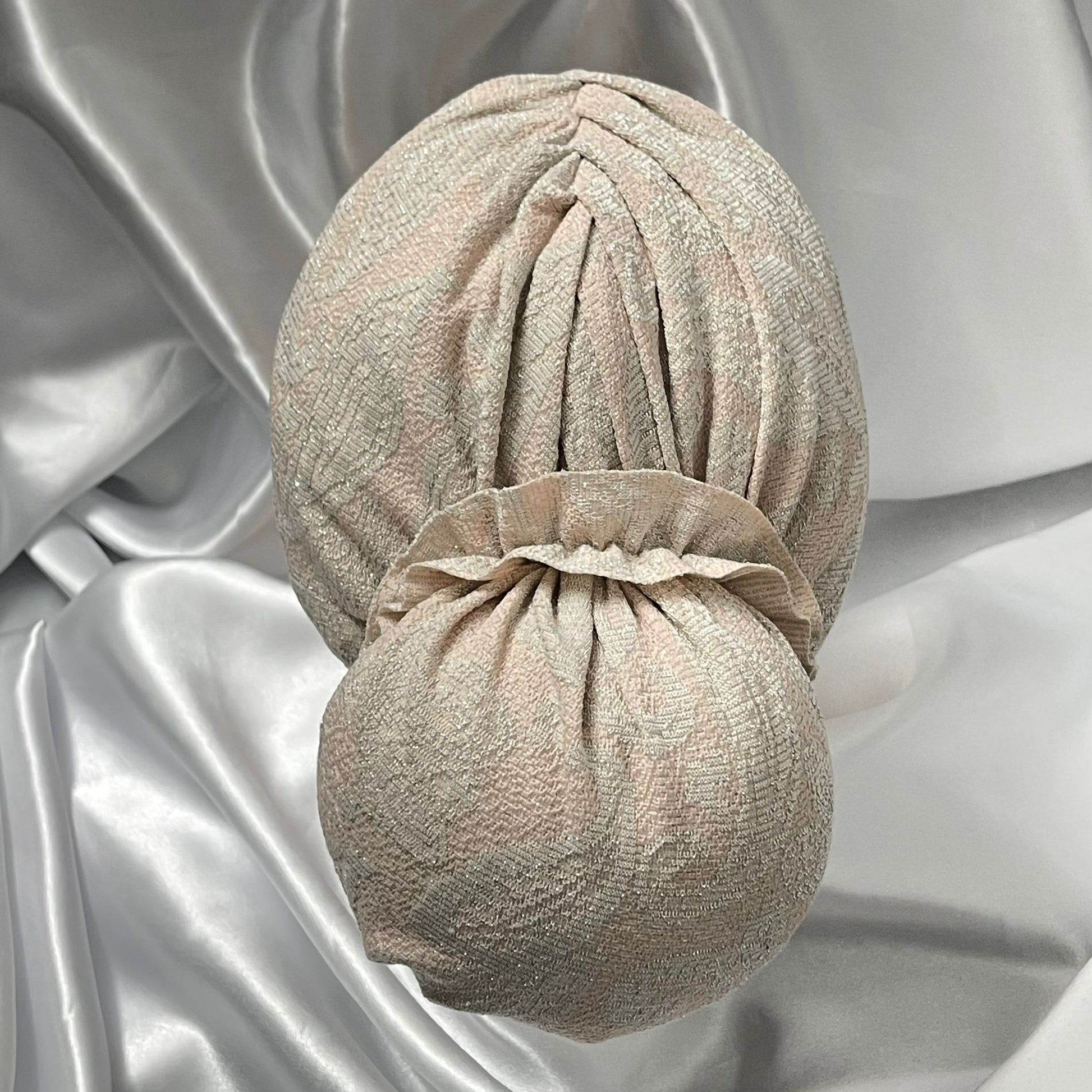טורבן בגוון פודרה עם עיטורים בצבע שמנת נצנץ כולל גומיה תואמת