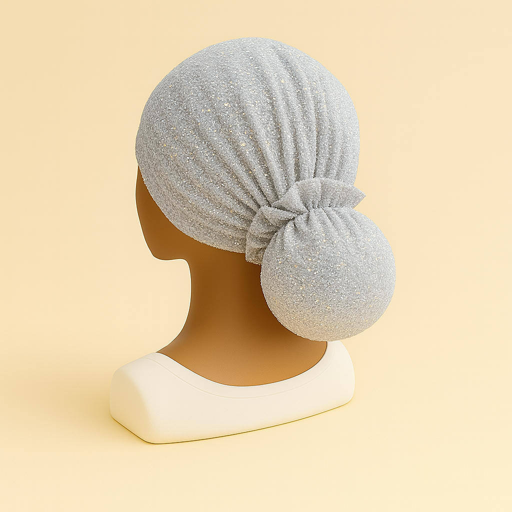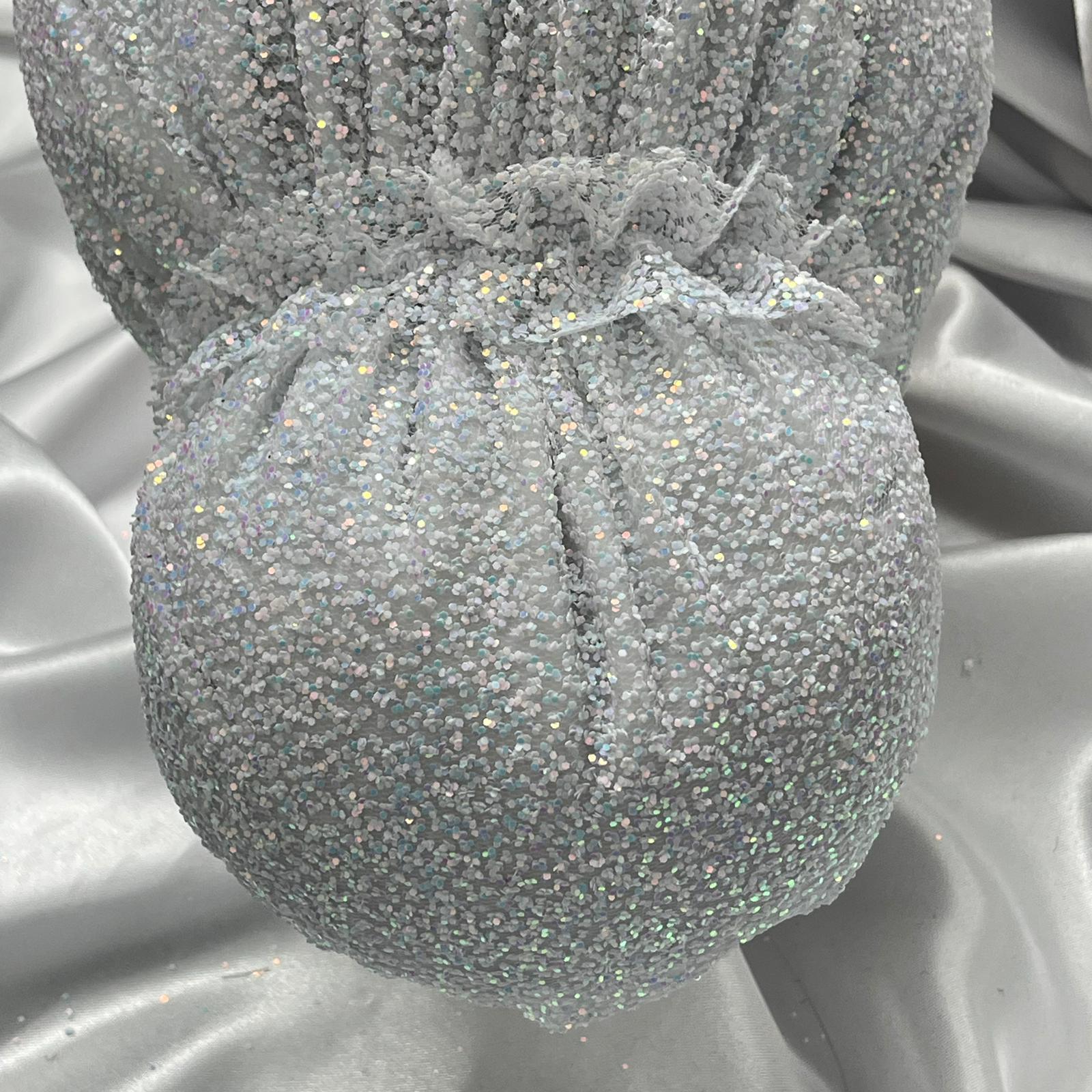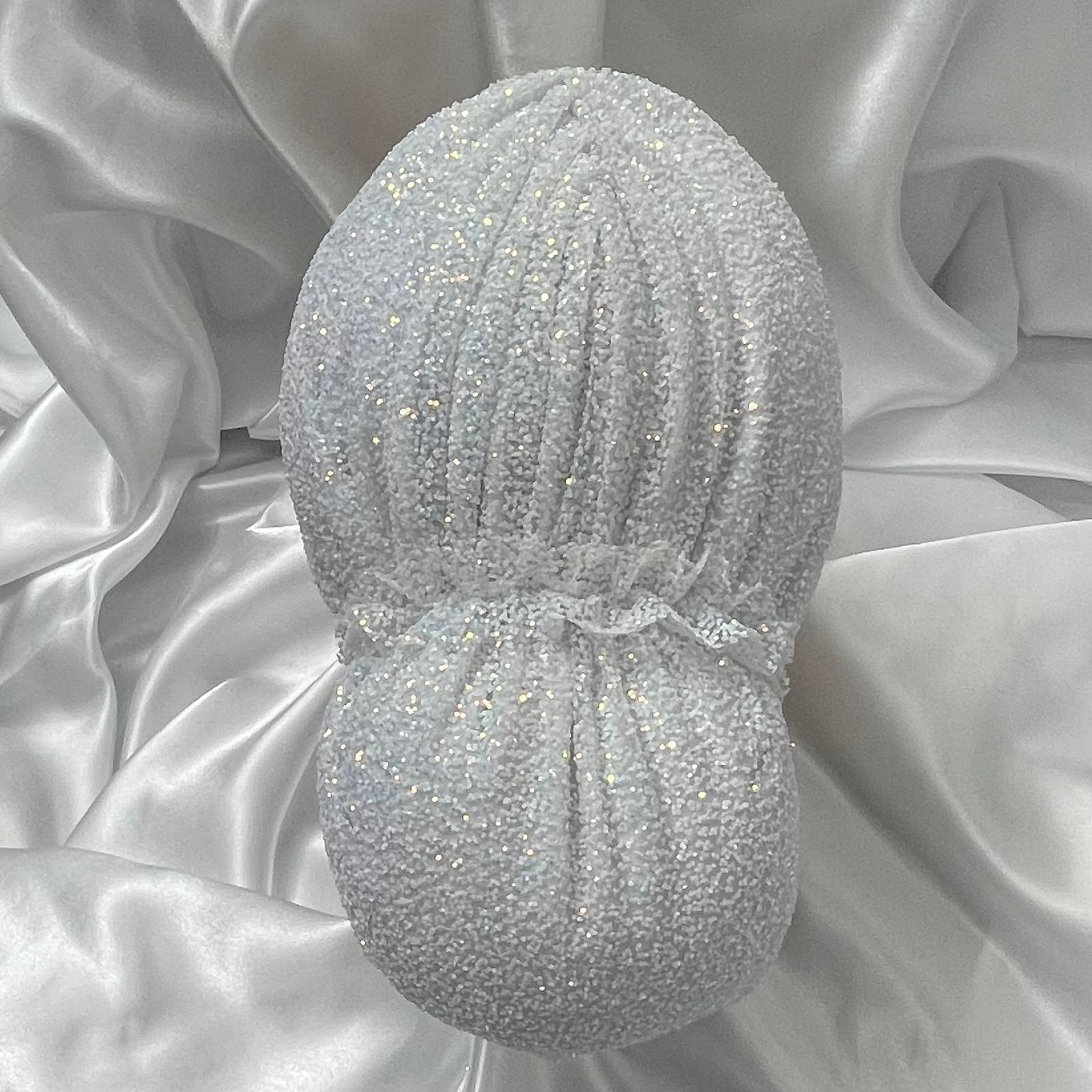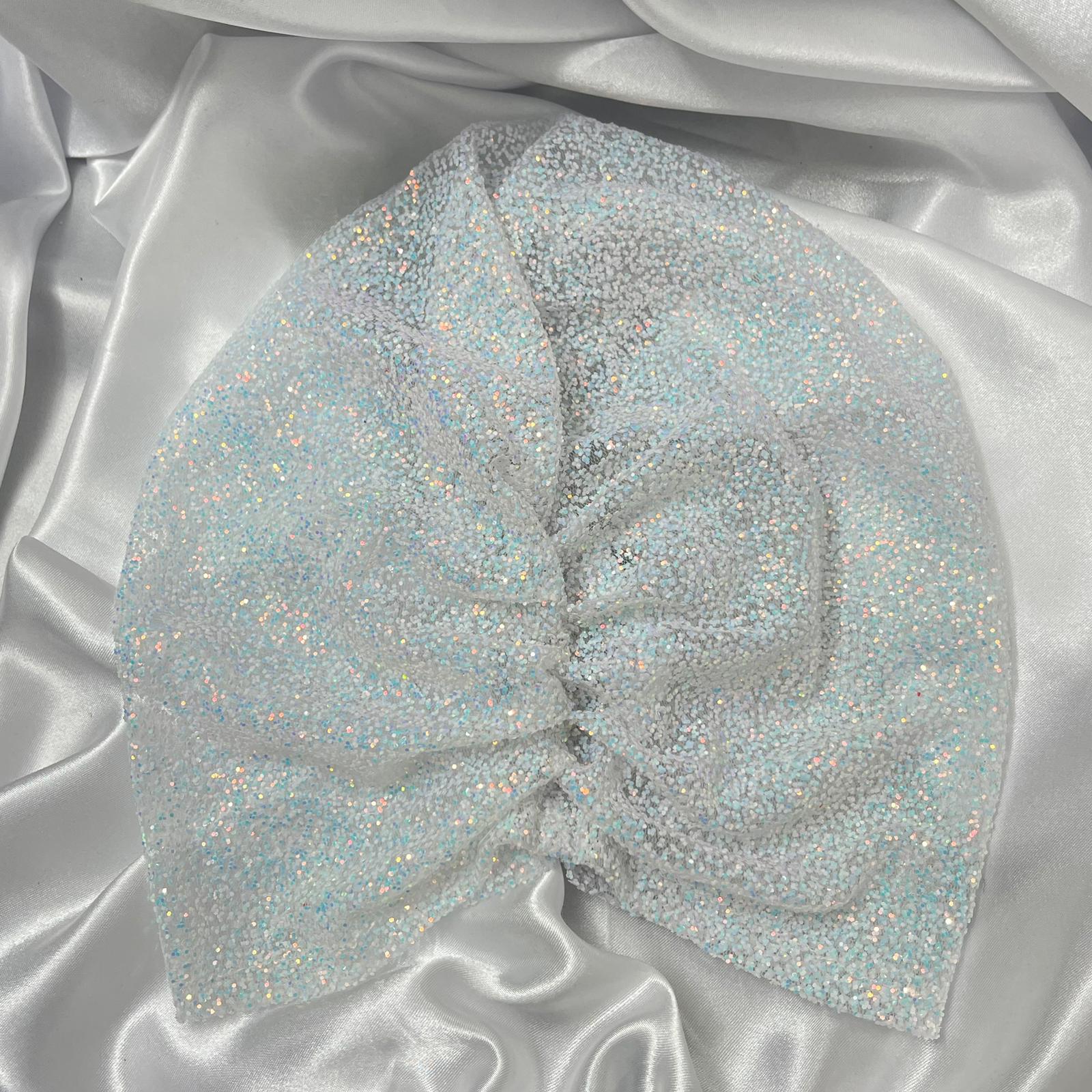 טורבן בצבע לבן עם שיבוץ אבנים זוהרות כולל גומיה תואמת