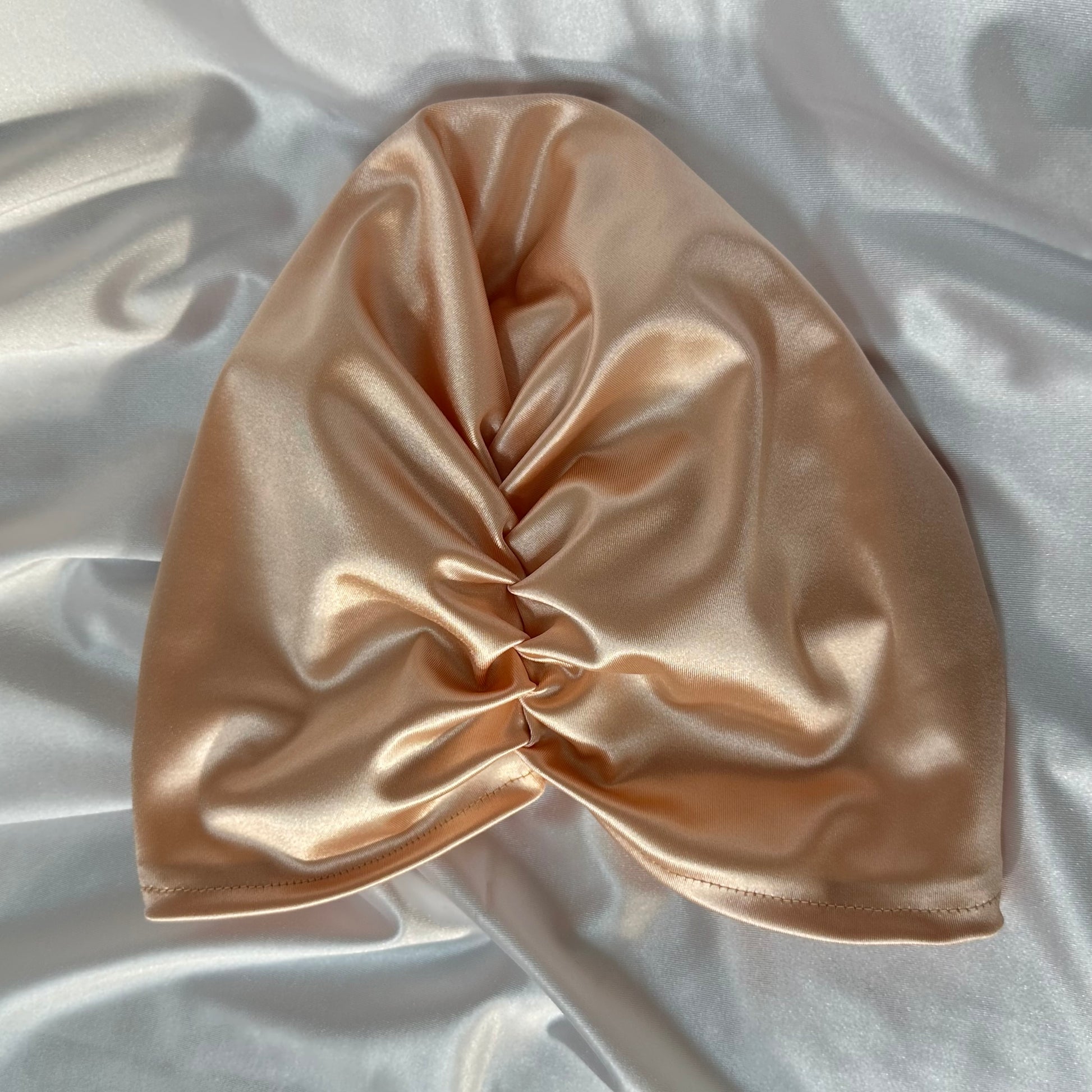 טורבן סאטן ארמני גוון אפרסק כולל גומייה תואמת