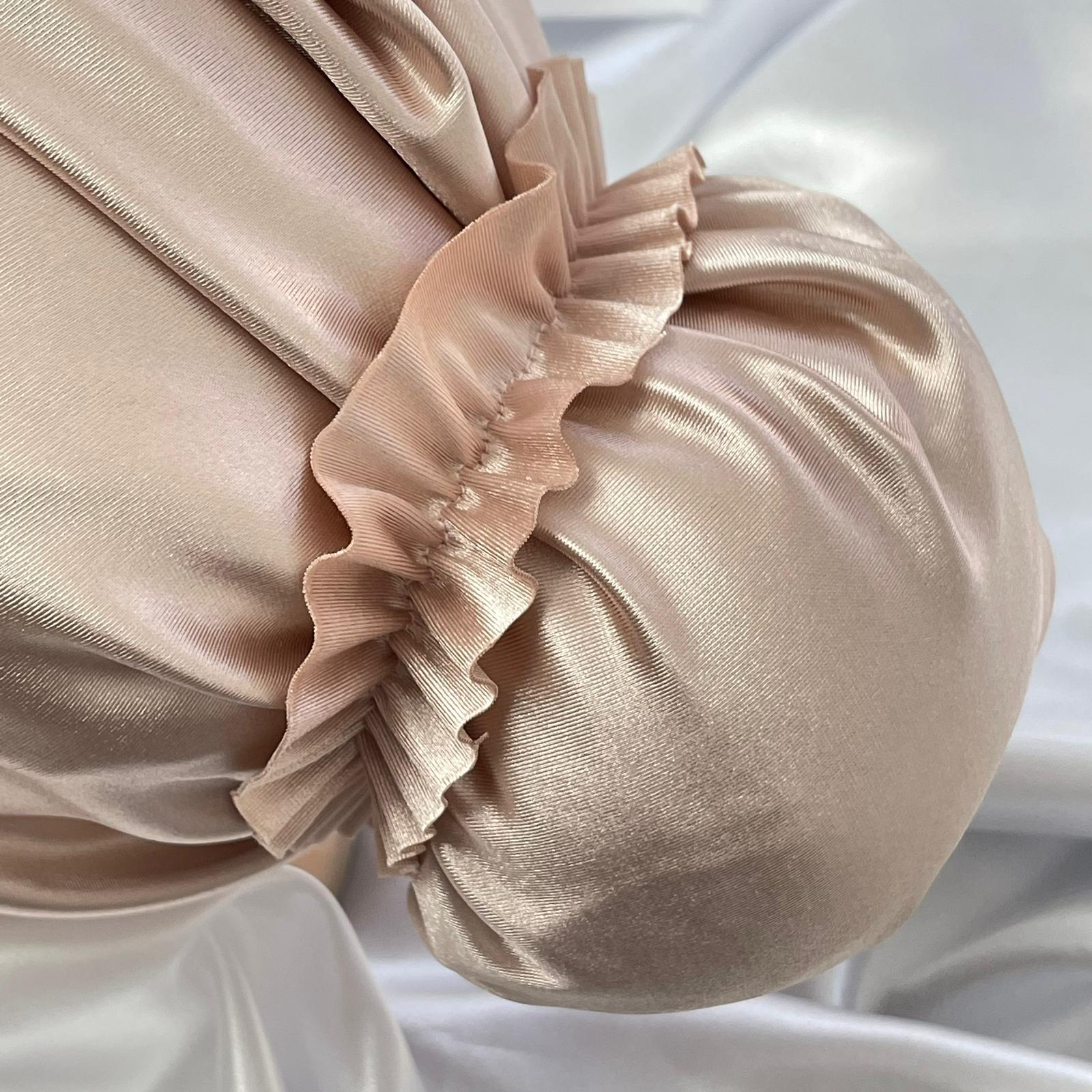 טורבן סאטן ארמני גוון פודרה כולל גומייה תואמת