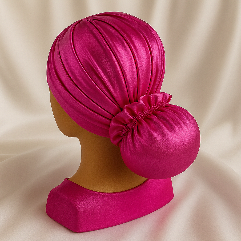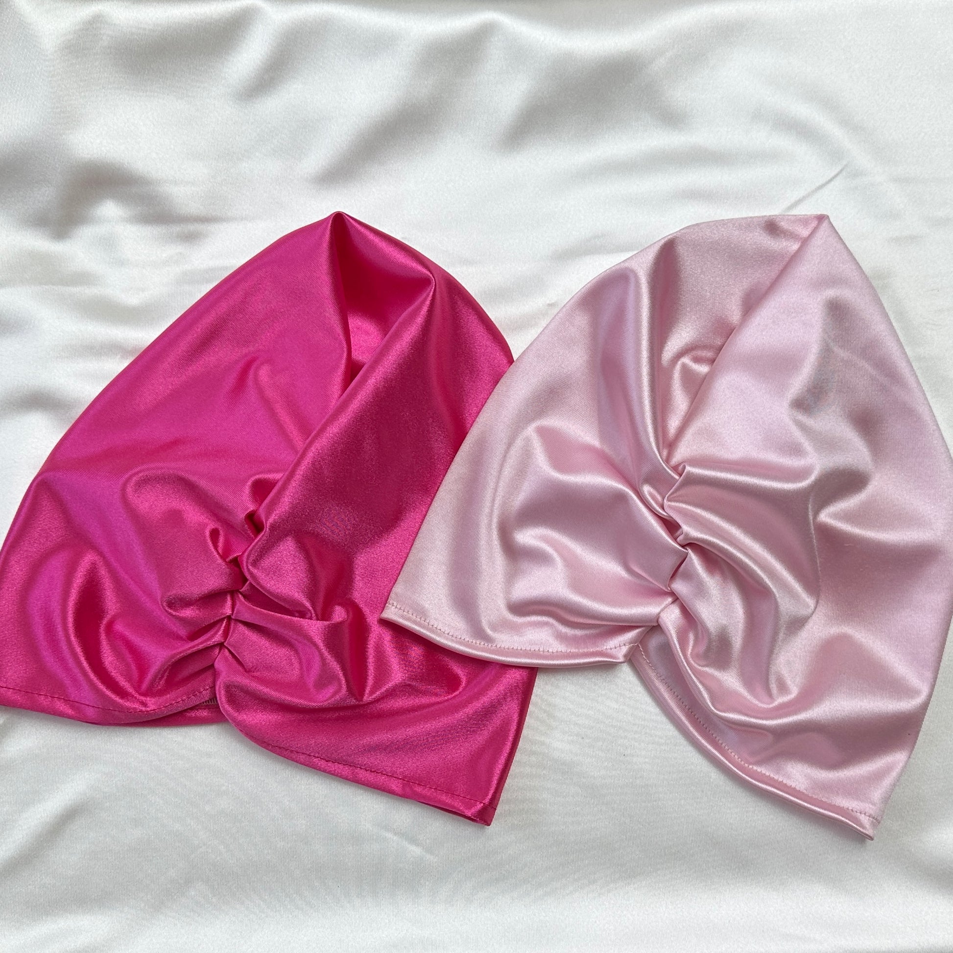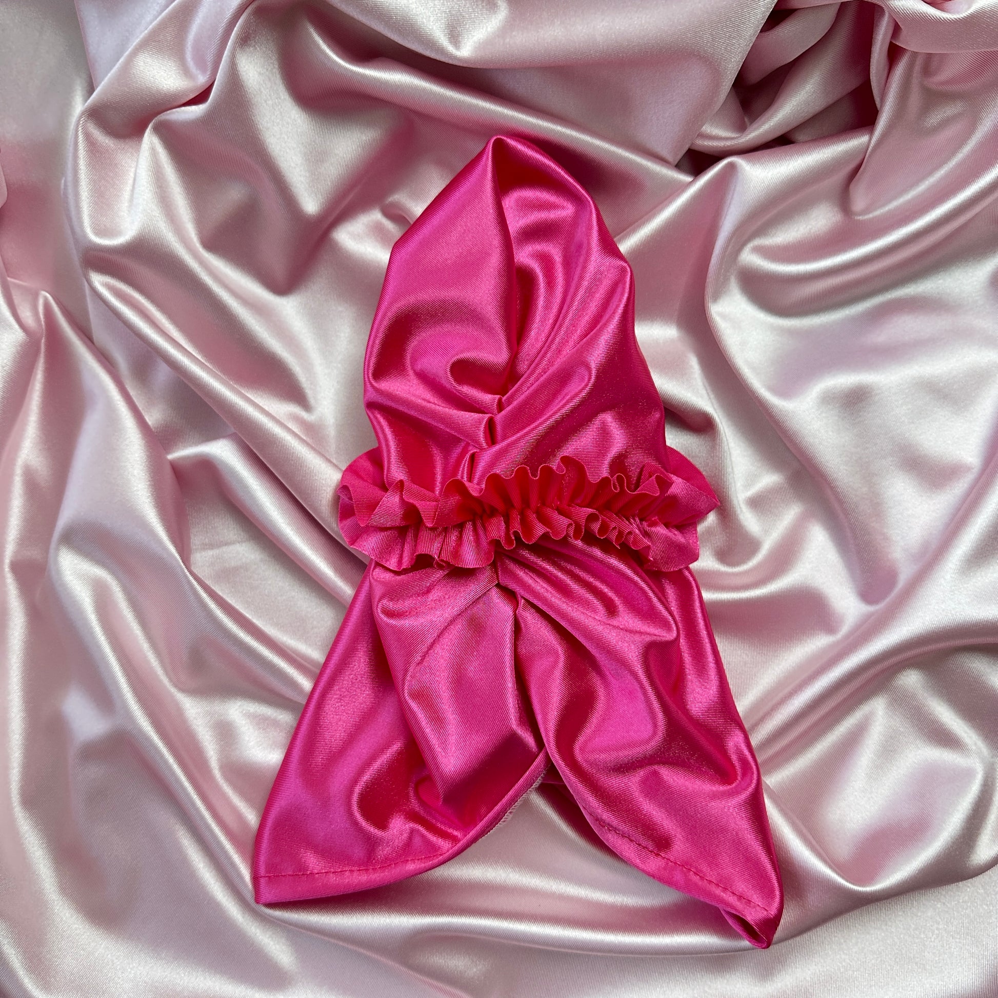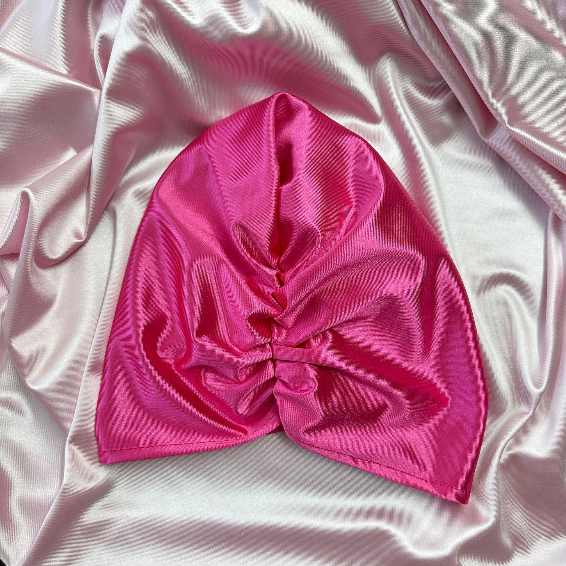 טורבן סאטן ארמני ורוד פוקסיה כולל גומייה תואמת