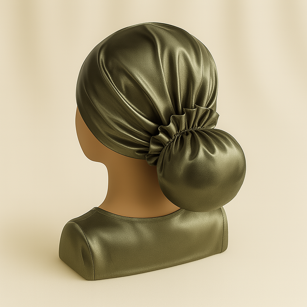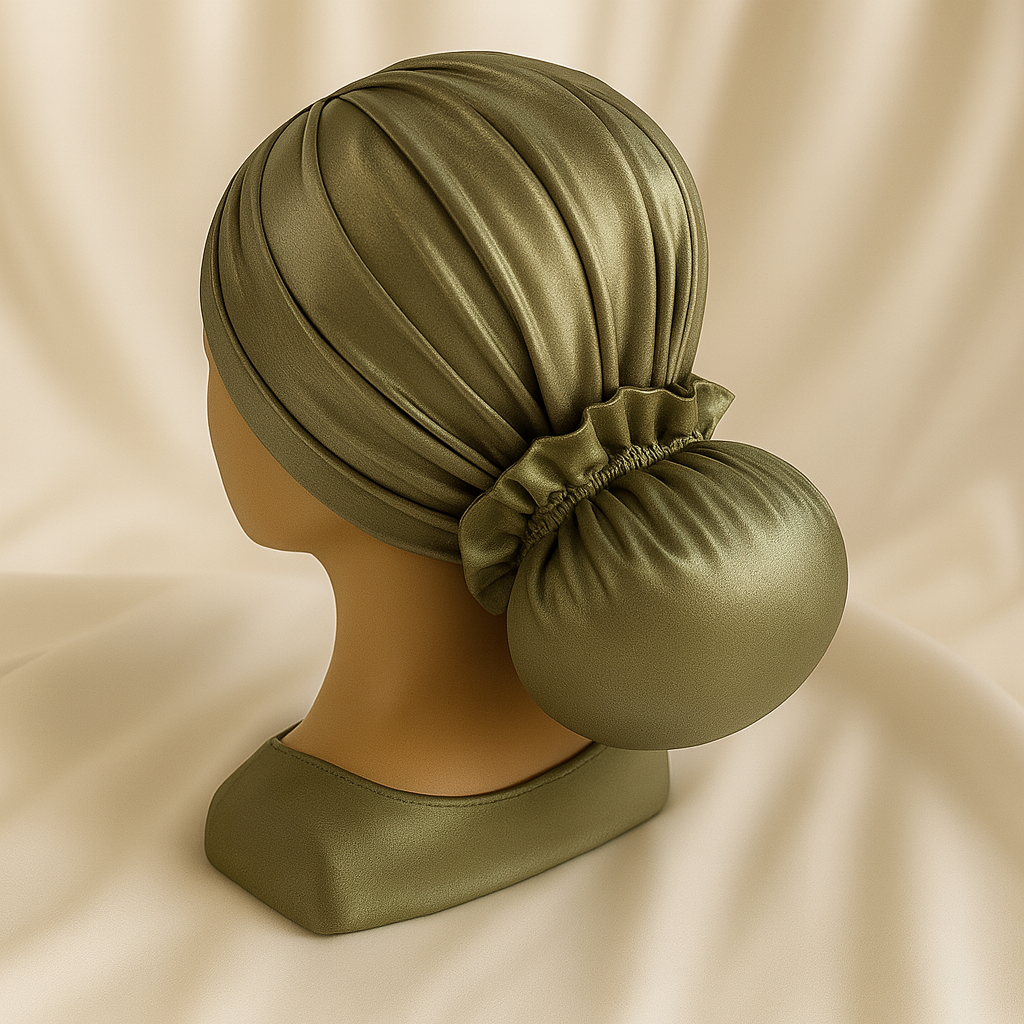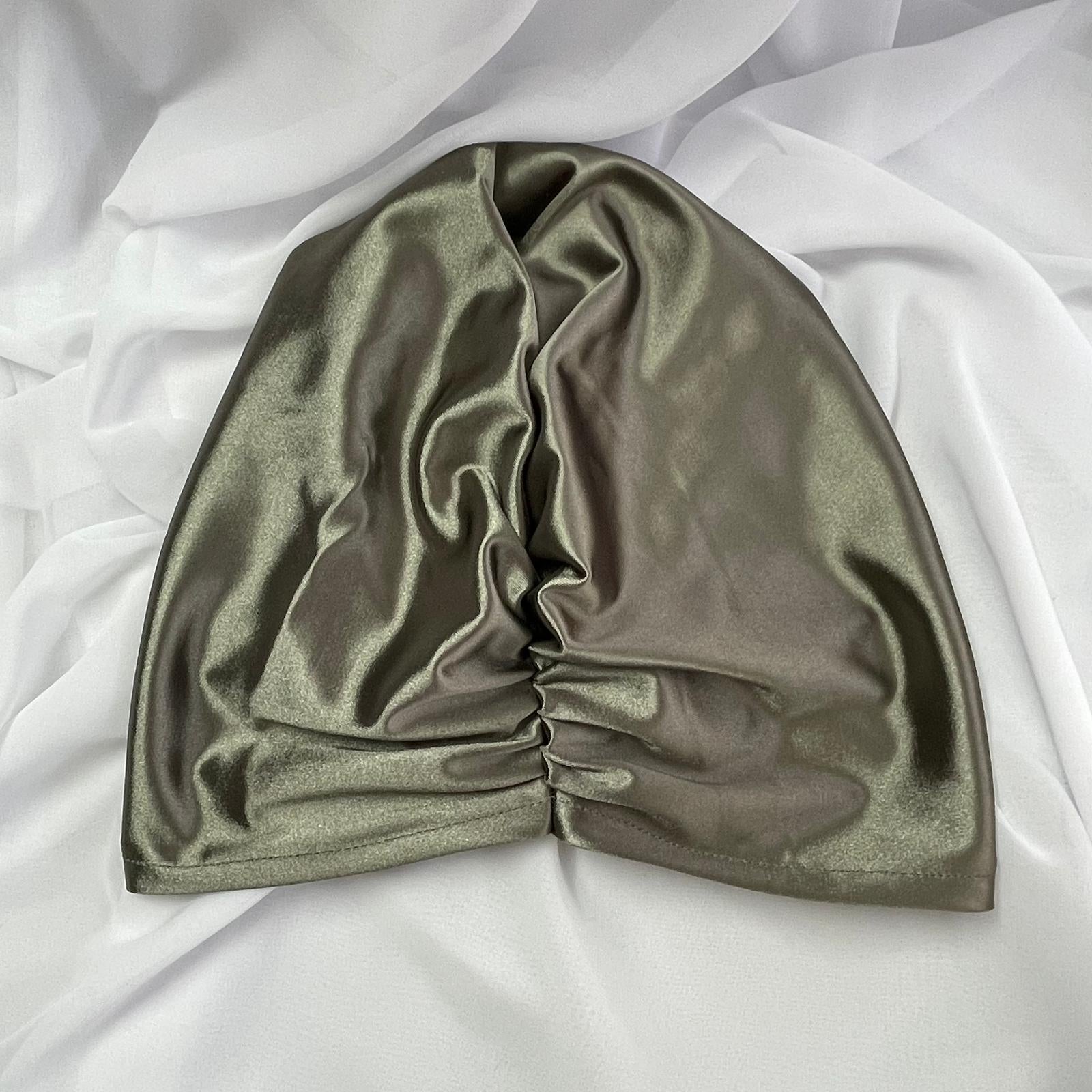 טורבן סאטן ארמני ירוק זית כולל גומייה תואמת