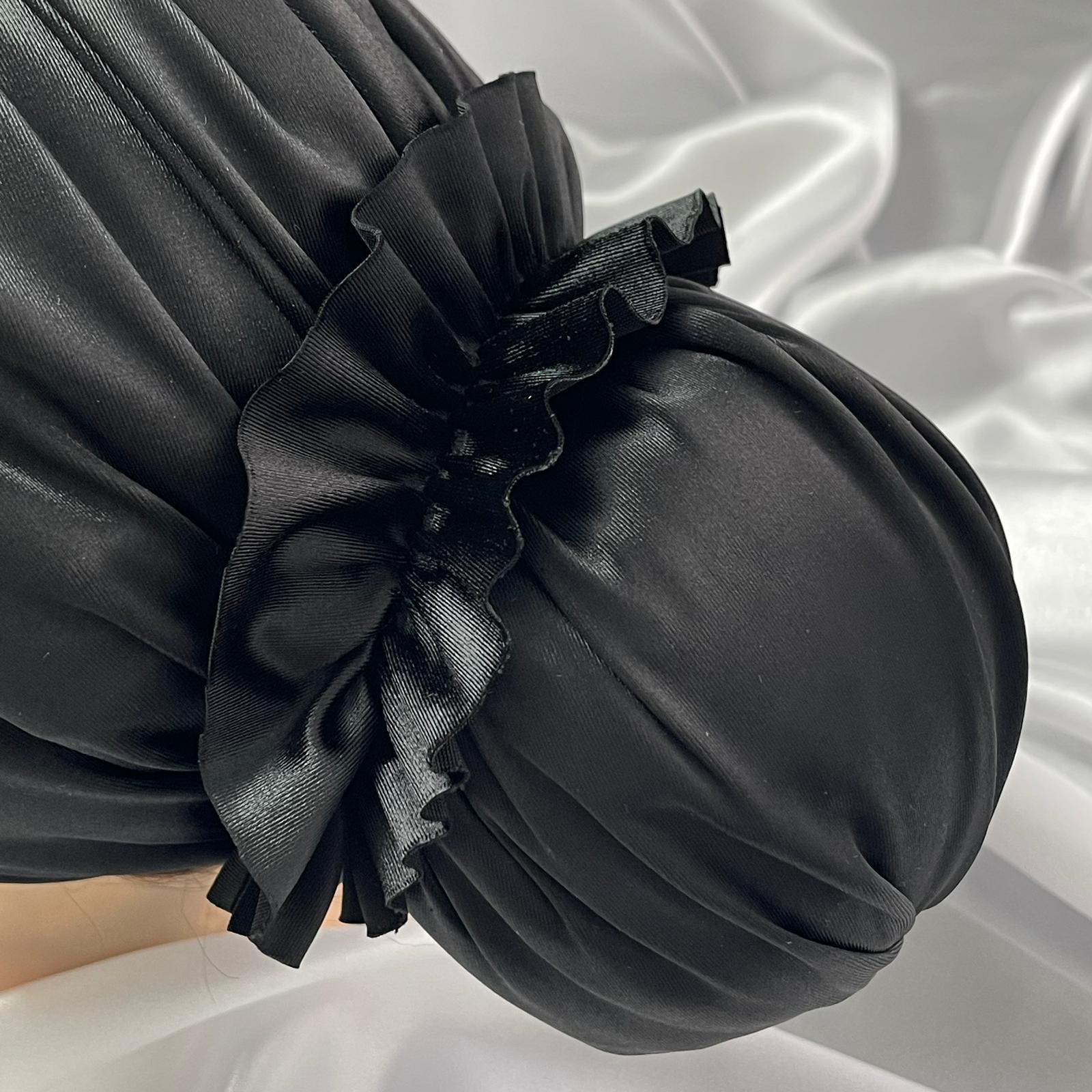 טורבן סאטן ארמני שחור כולל גומייה תואמת