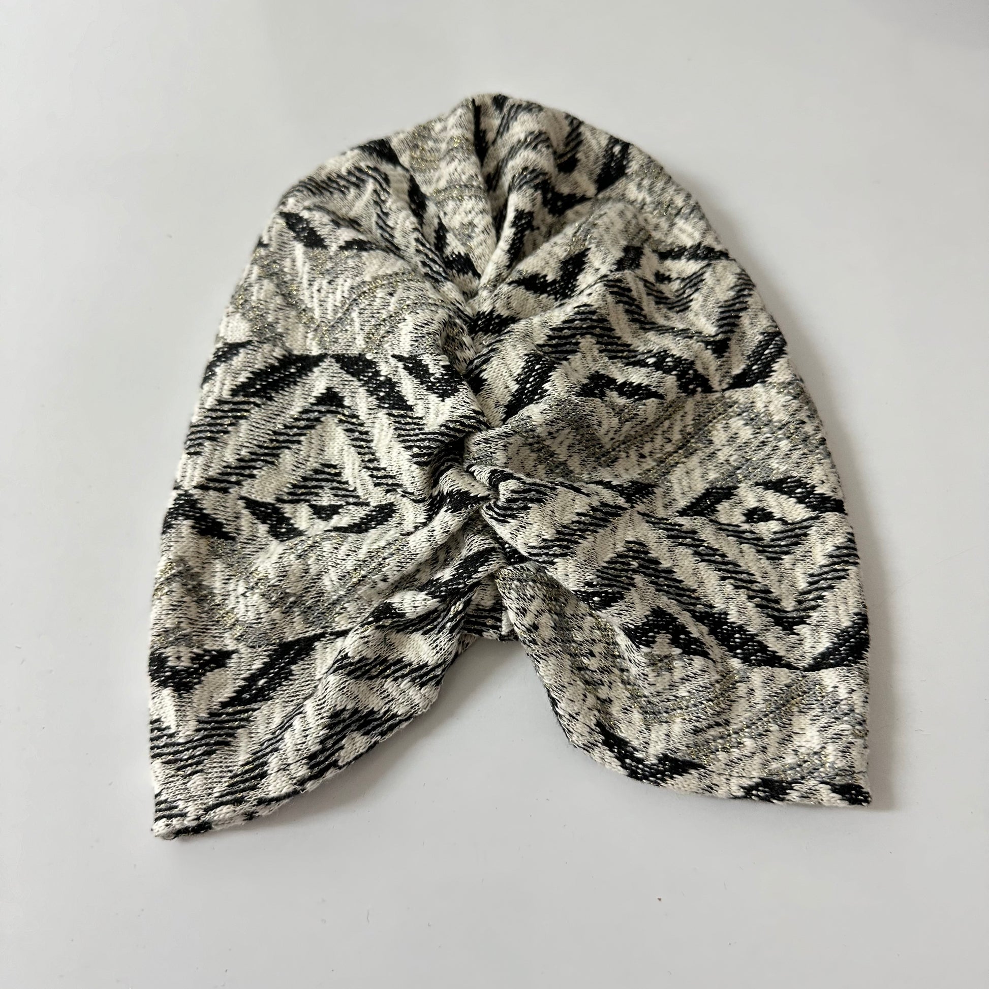 טורבן סריג כולל גומיה תואמת בצבע שחור אפור וניל ונצנץ