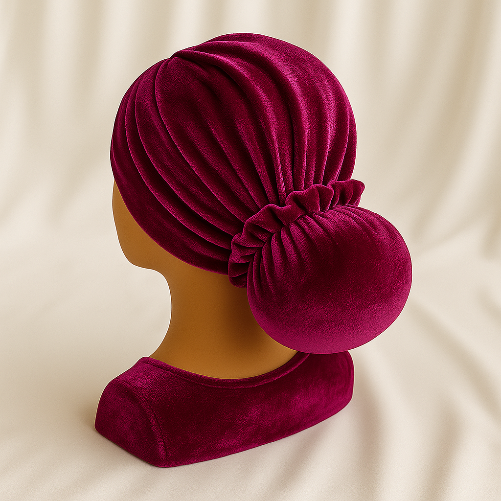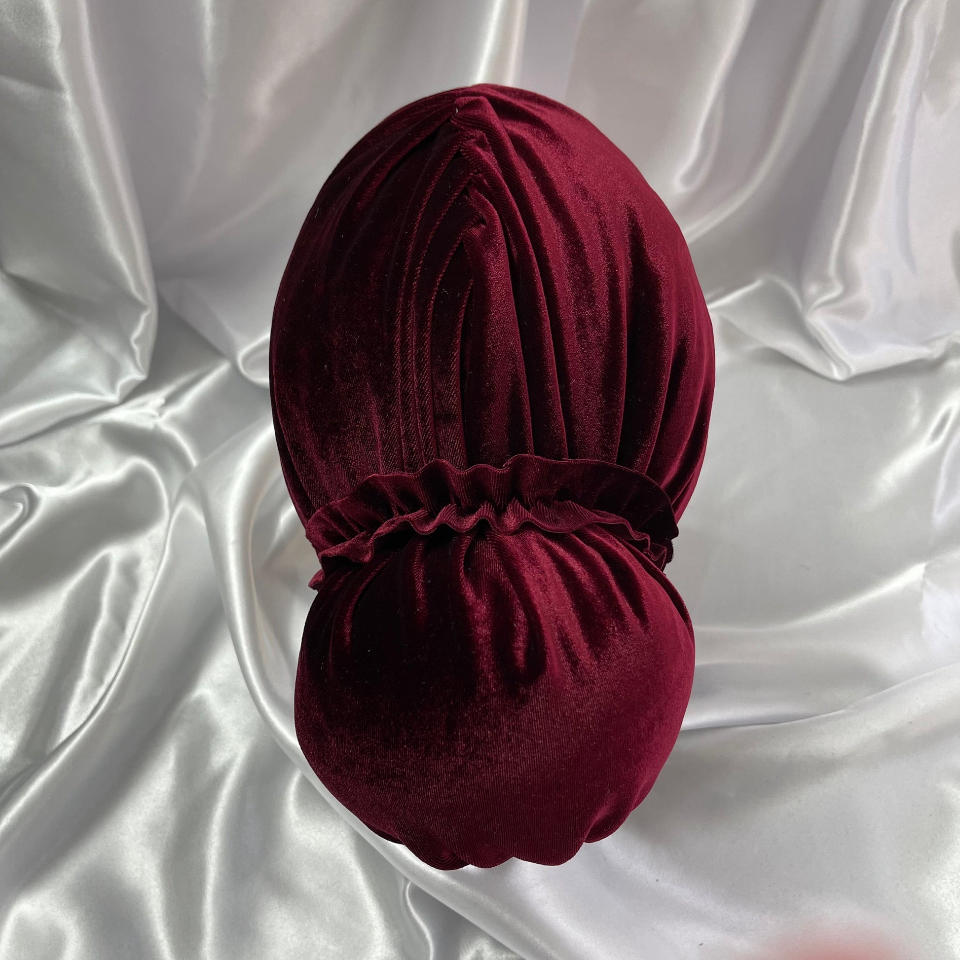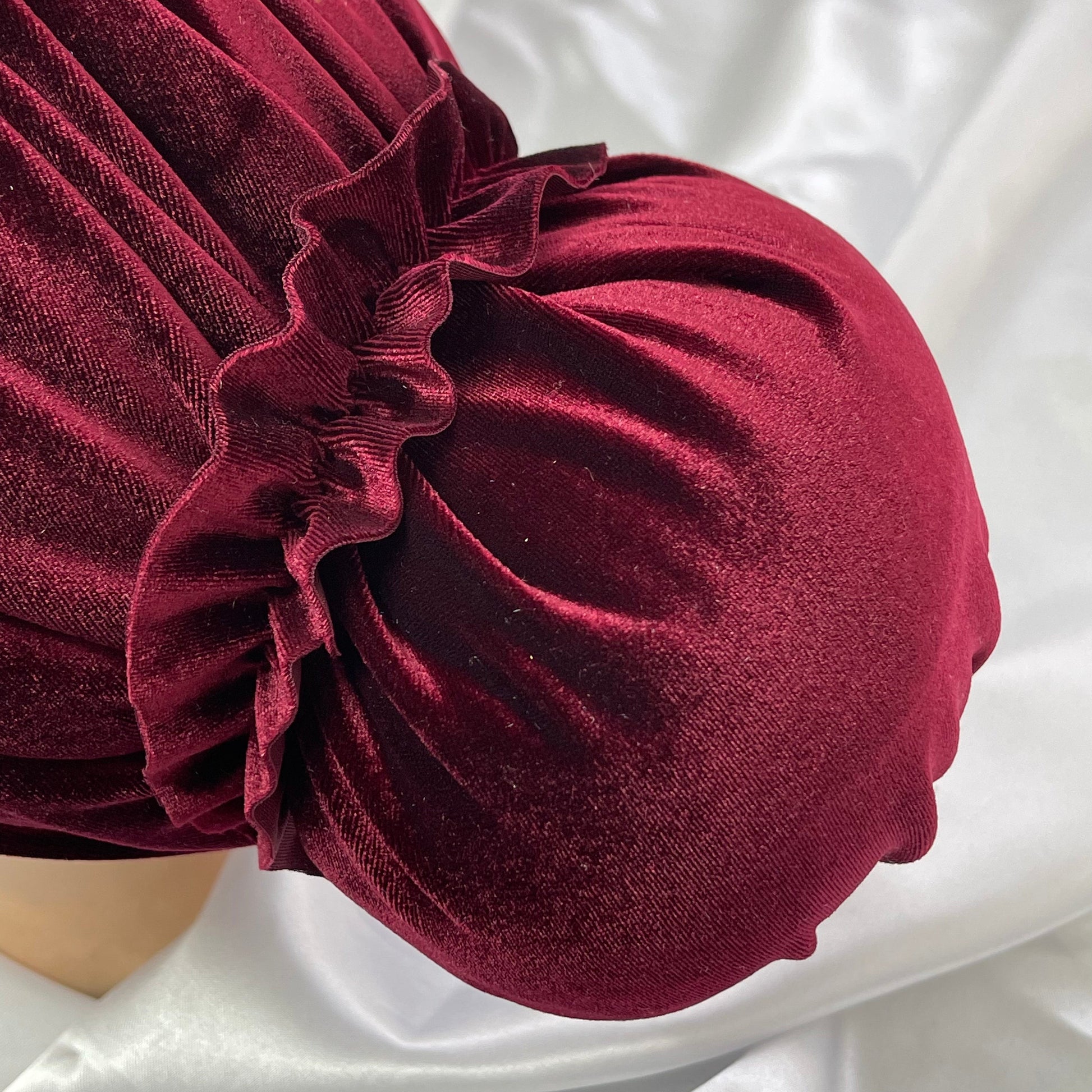טורבן קטיפה בורדו יין כולל גומייה תואמת