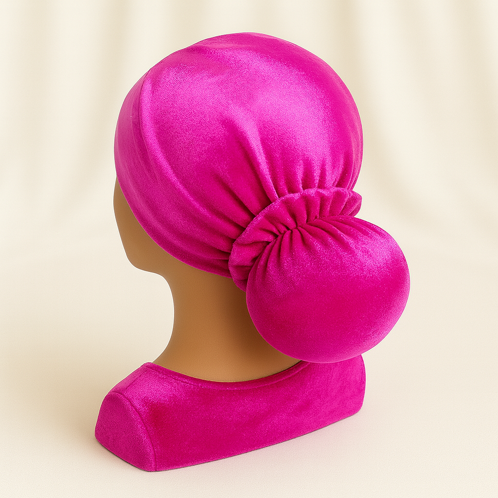 טורבן קטיפה ורוד פוקסיה כולל גומייה תואמת
