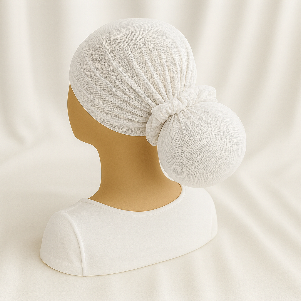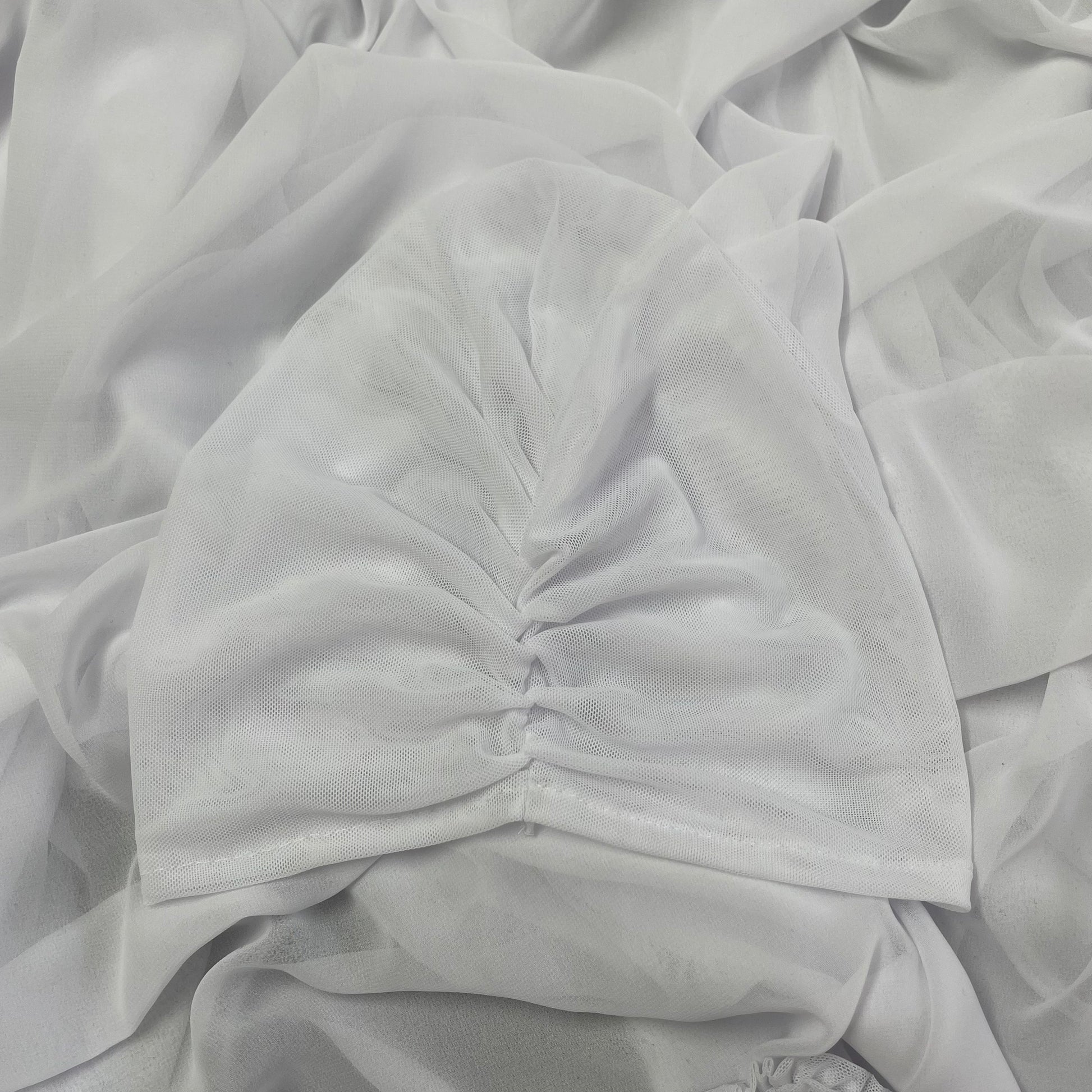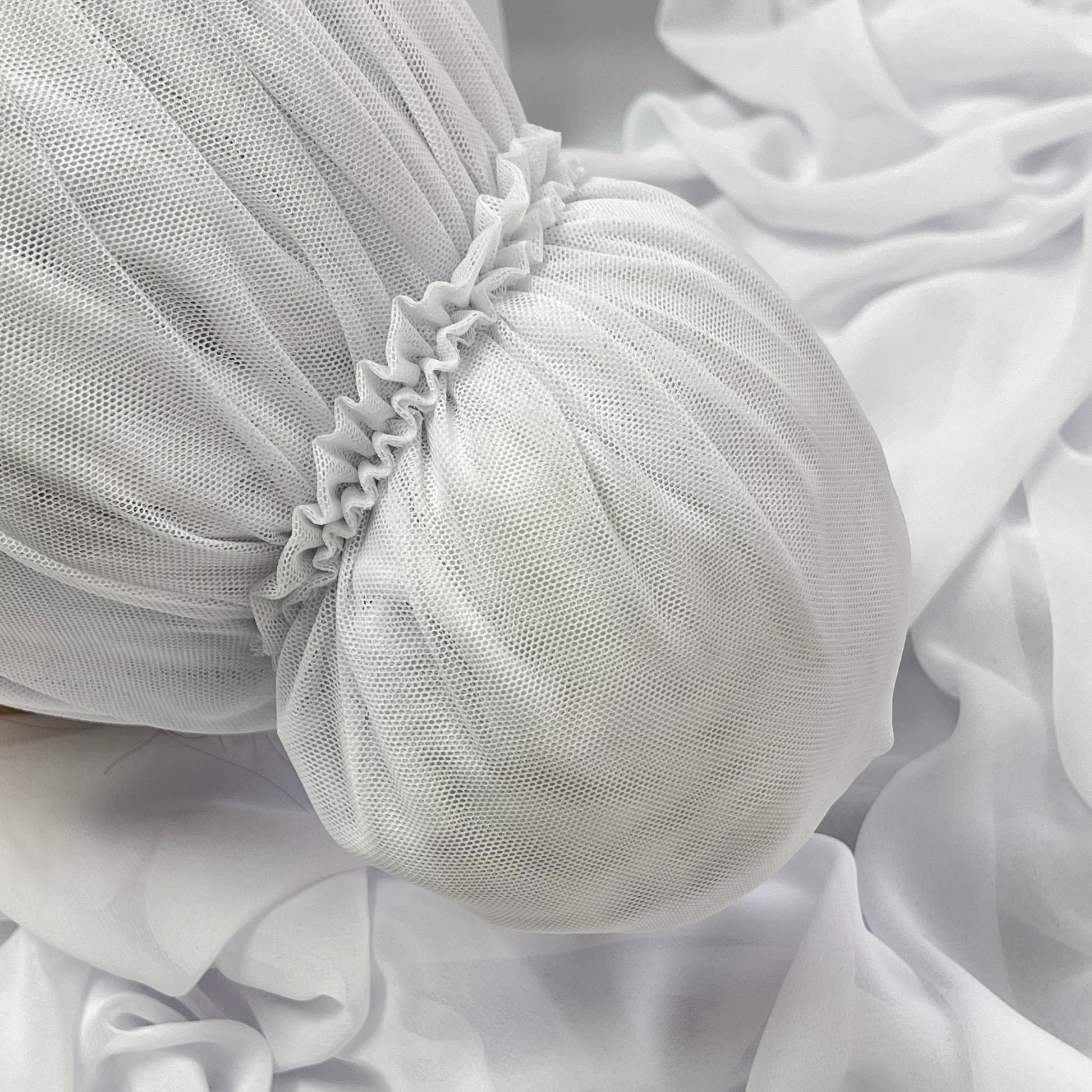 טורבן רשת משי כפולה לבן כולל גומייה תואמת