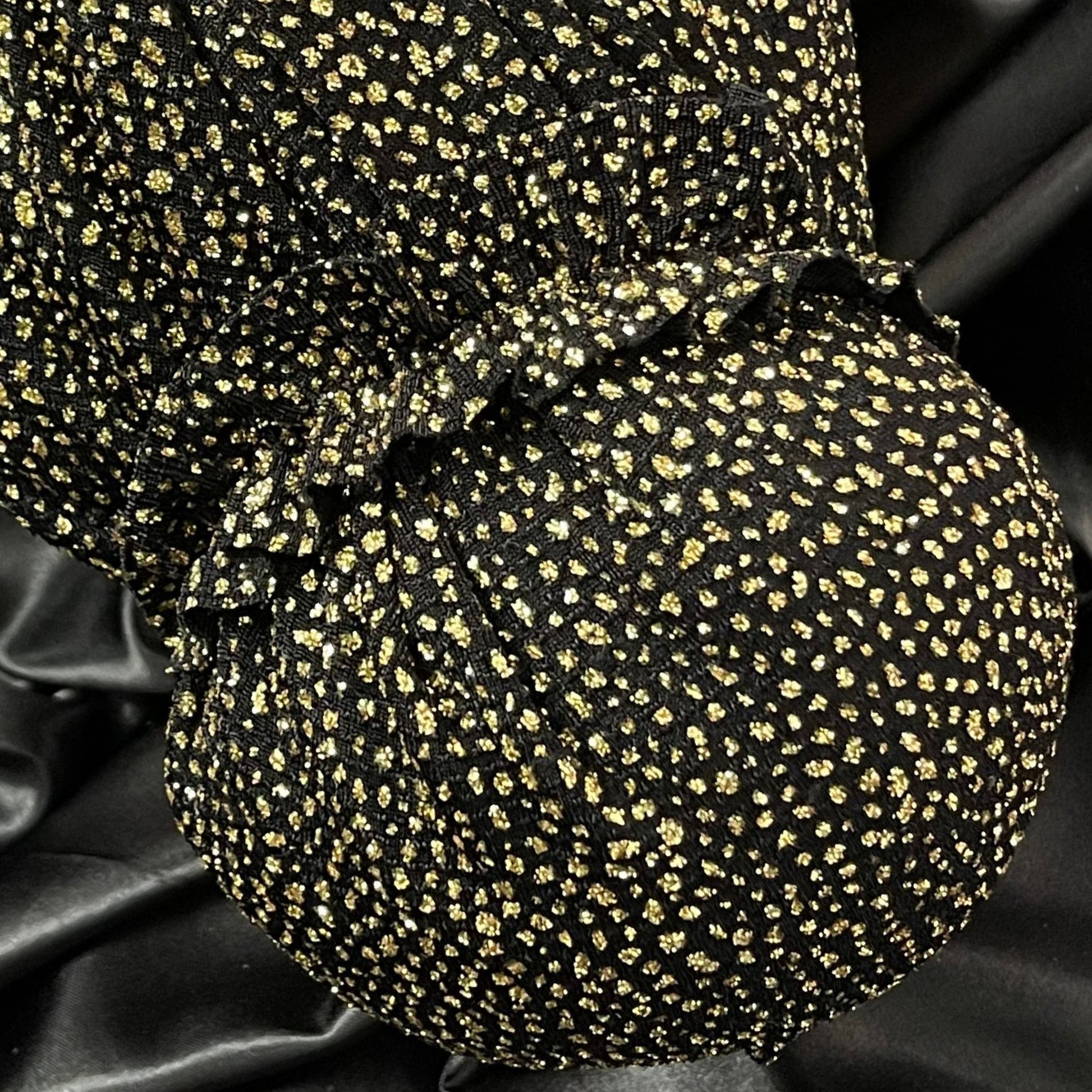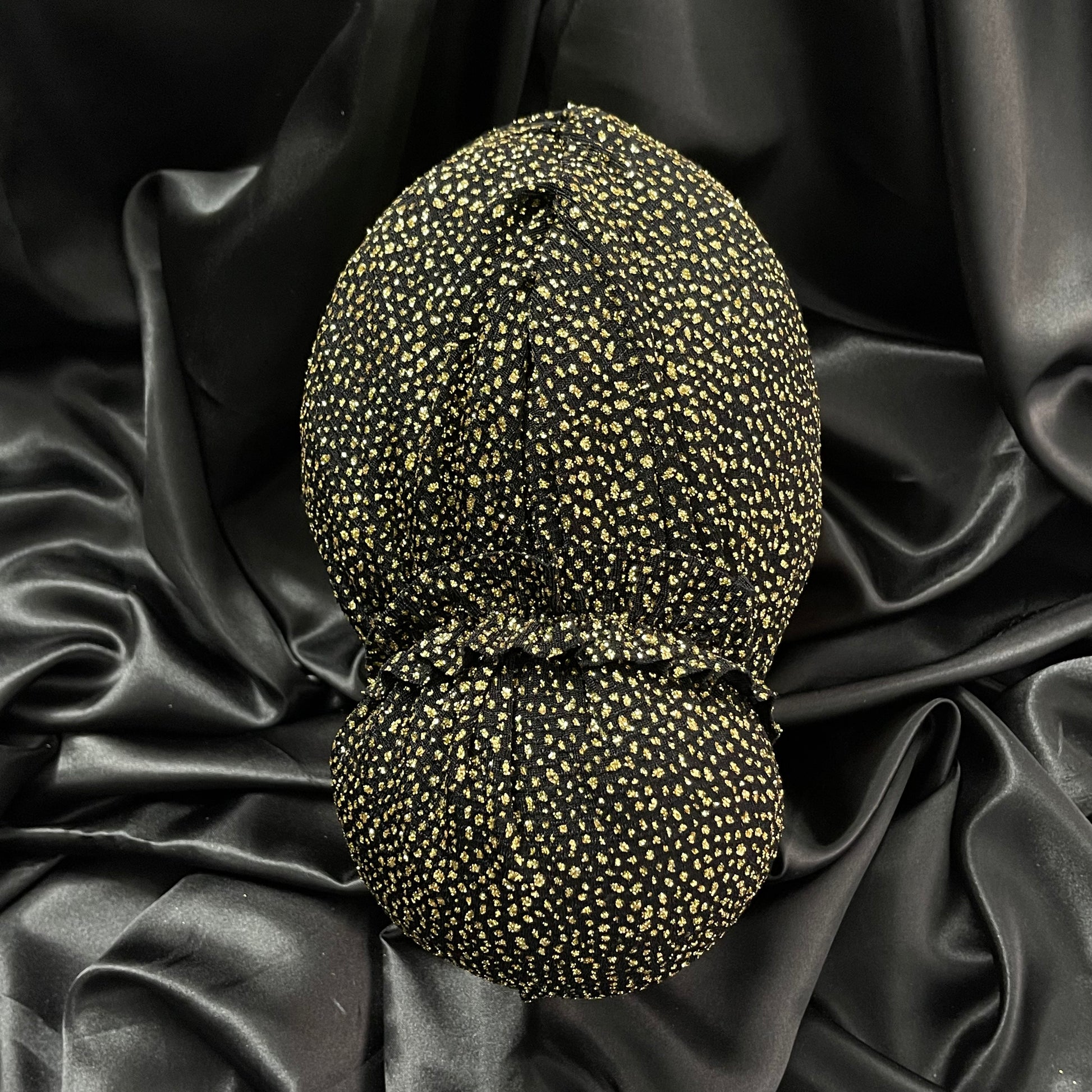 טורבן שחור עם שיבוץ בצבע זהב כולל גומיה תואמת
