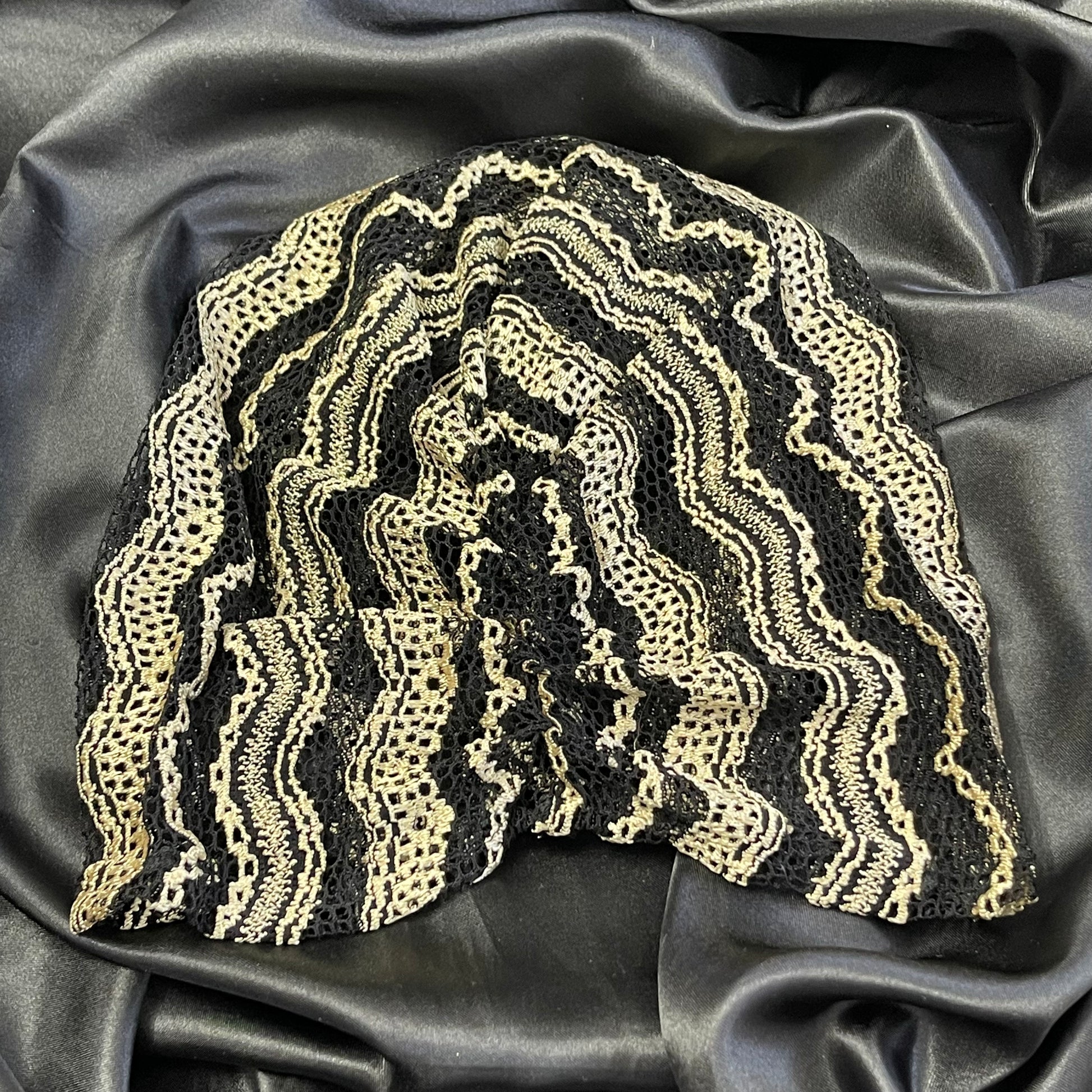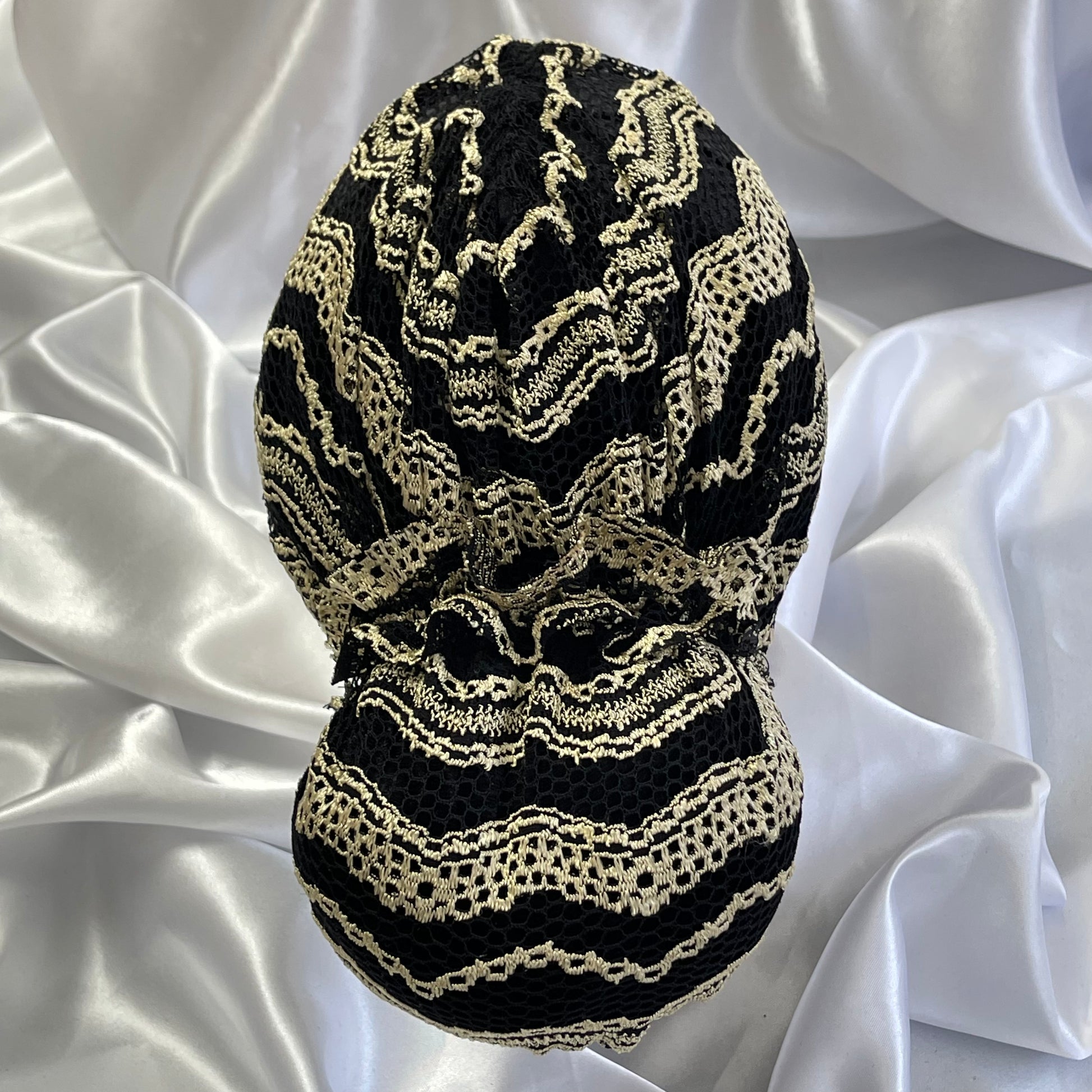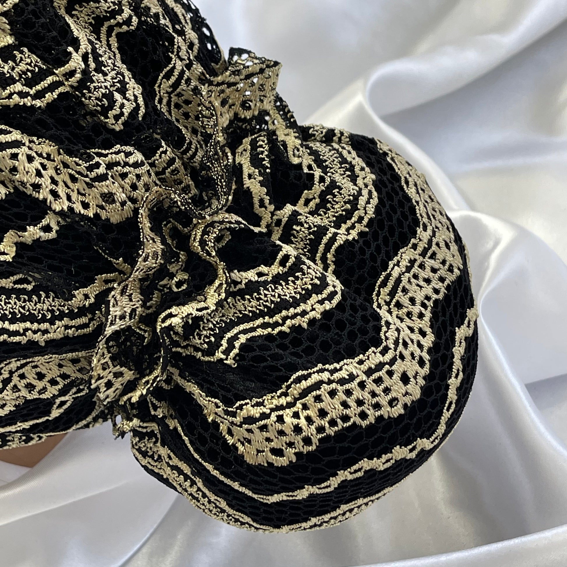 טורבן תחרה בצבע שחור וזהב