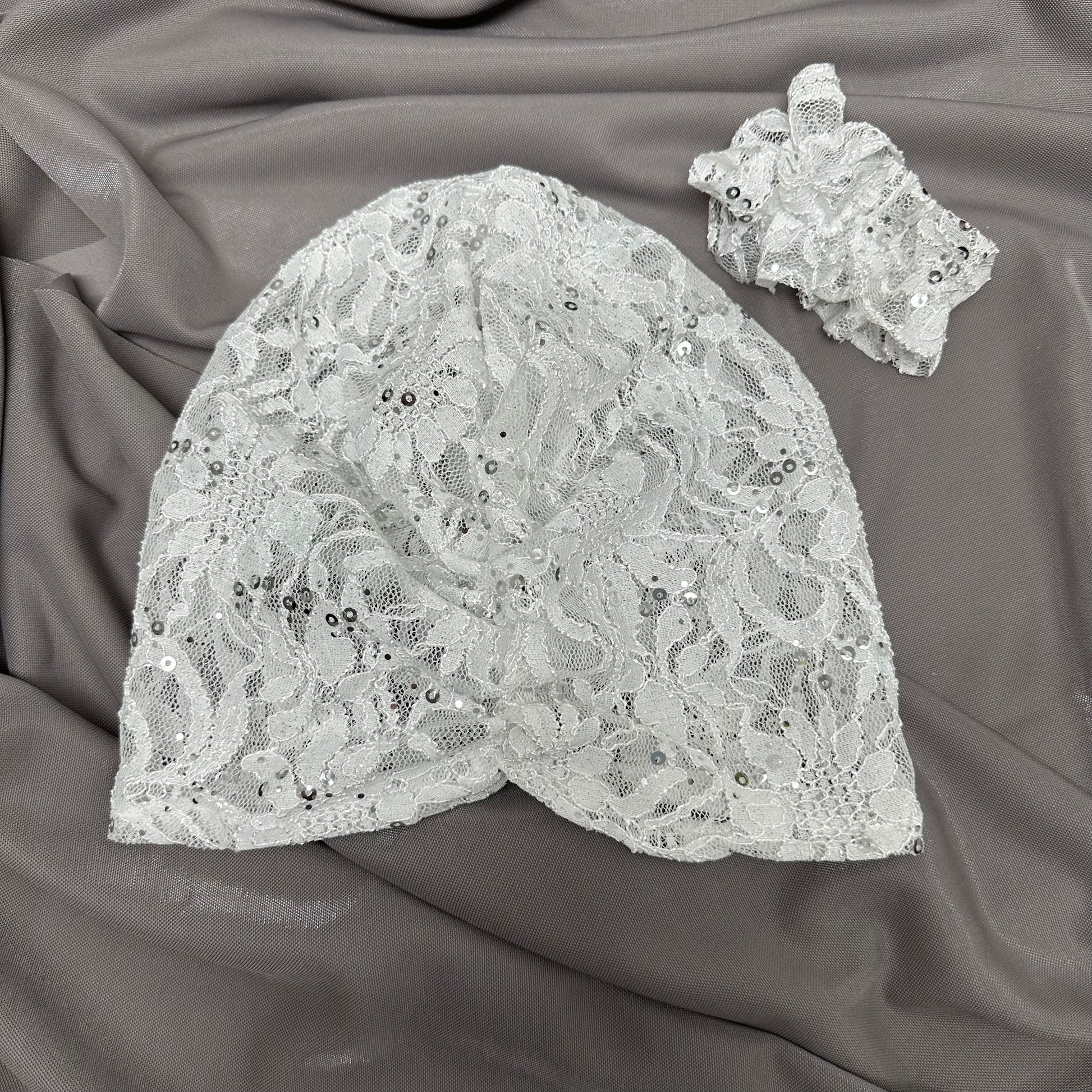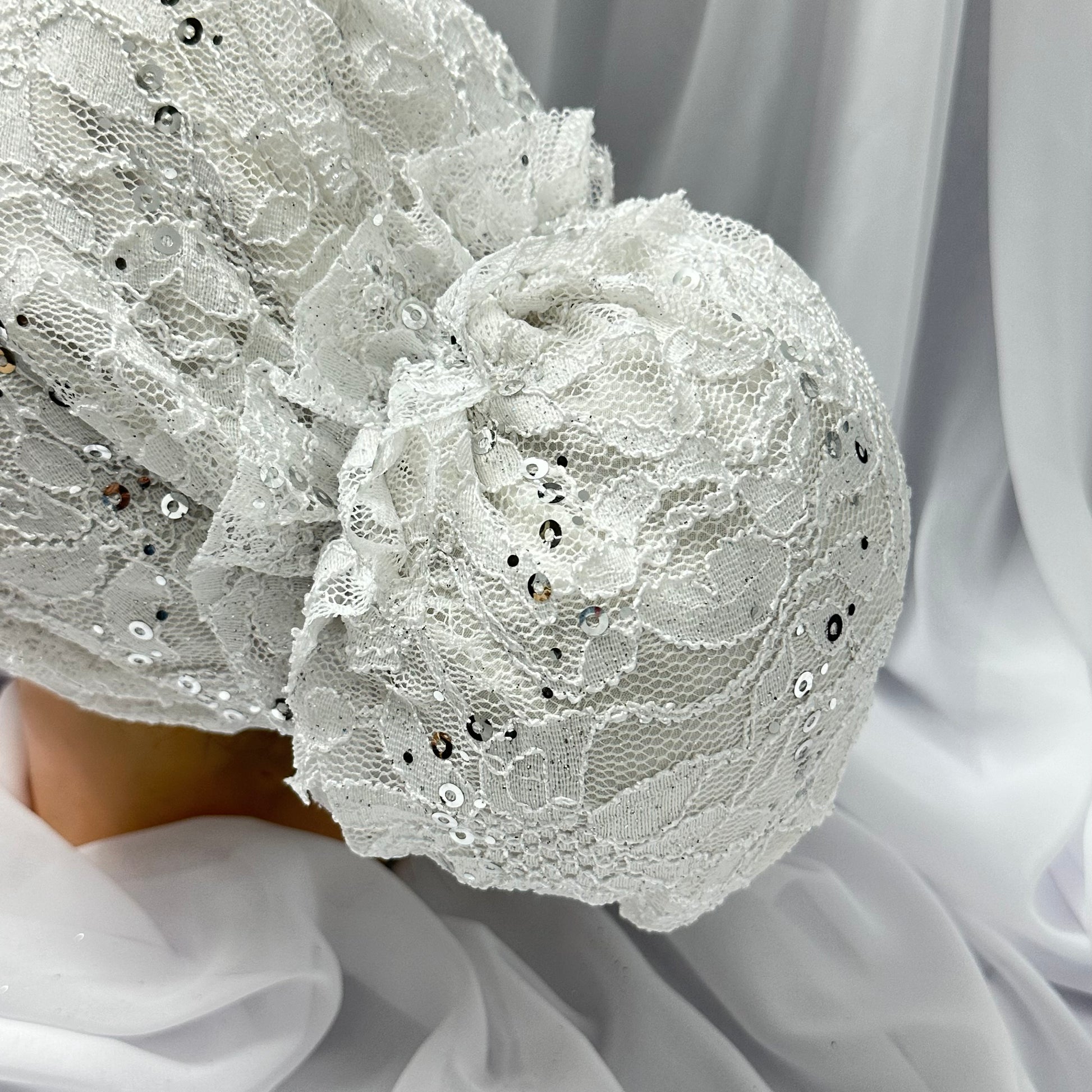 טורבן תחרה קרושה מנצנץ בד נעים ונמתח