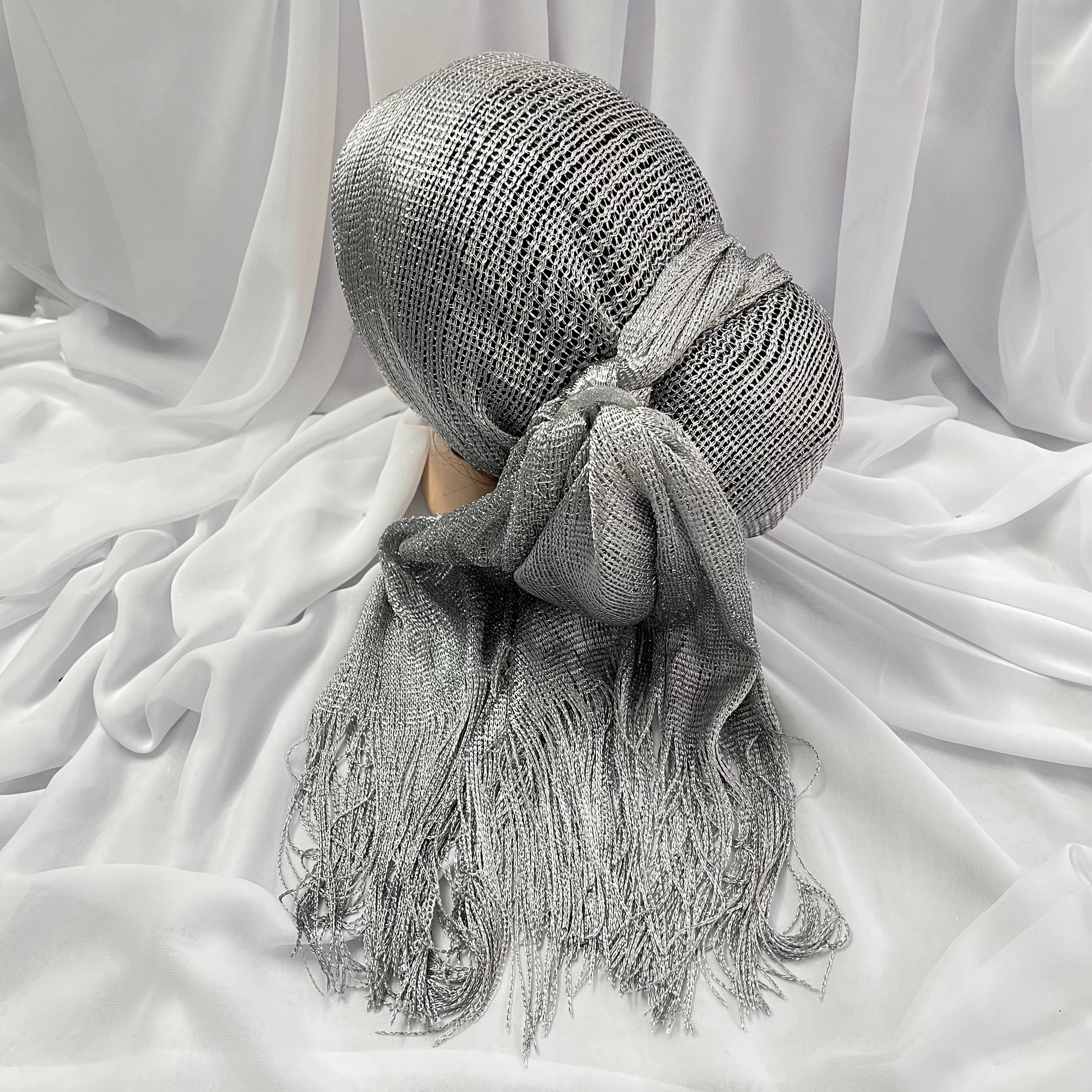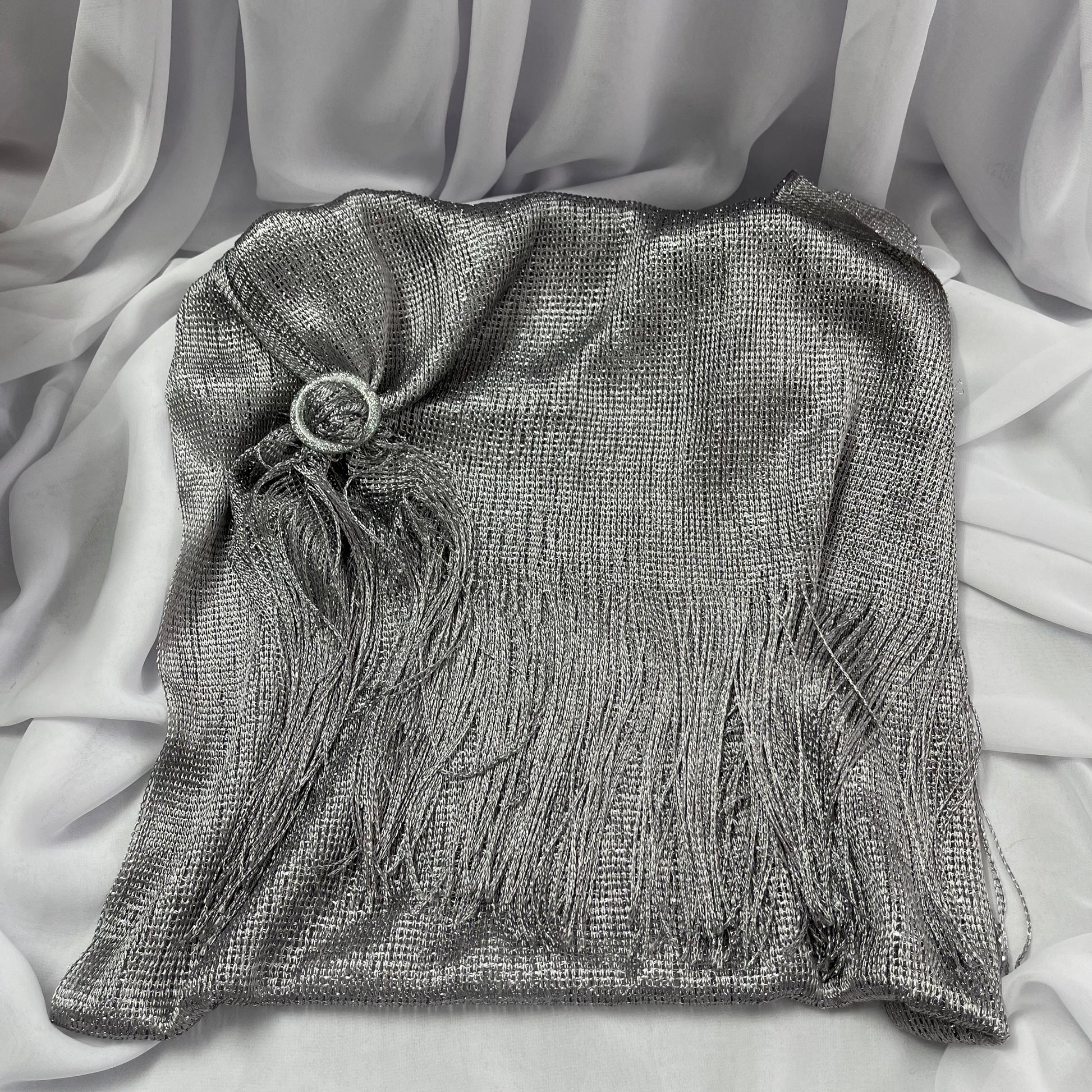 מטפחת לונג בצבע כסוף נצנץ מגיעה עם אבזם לעיצוב
