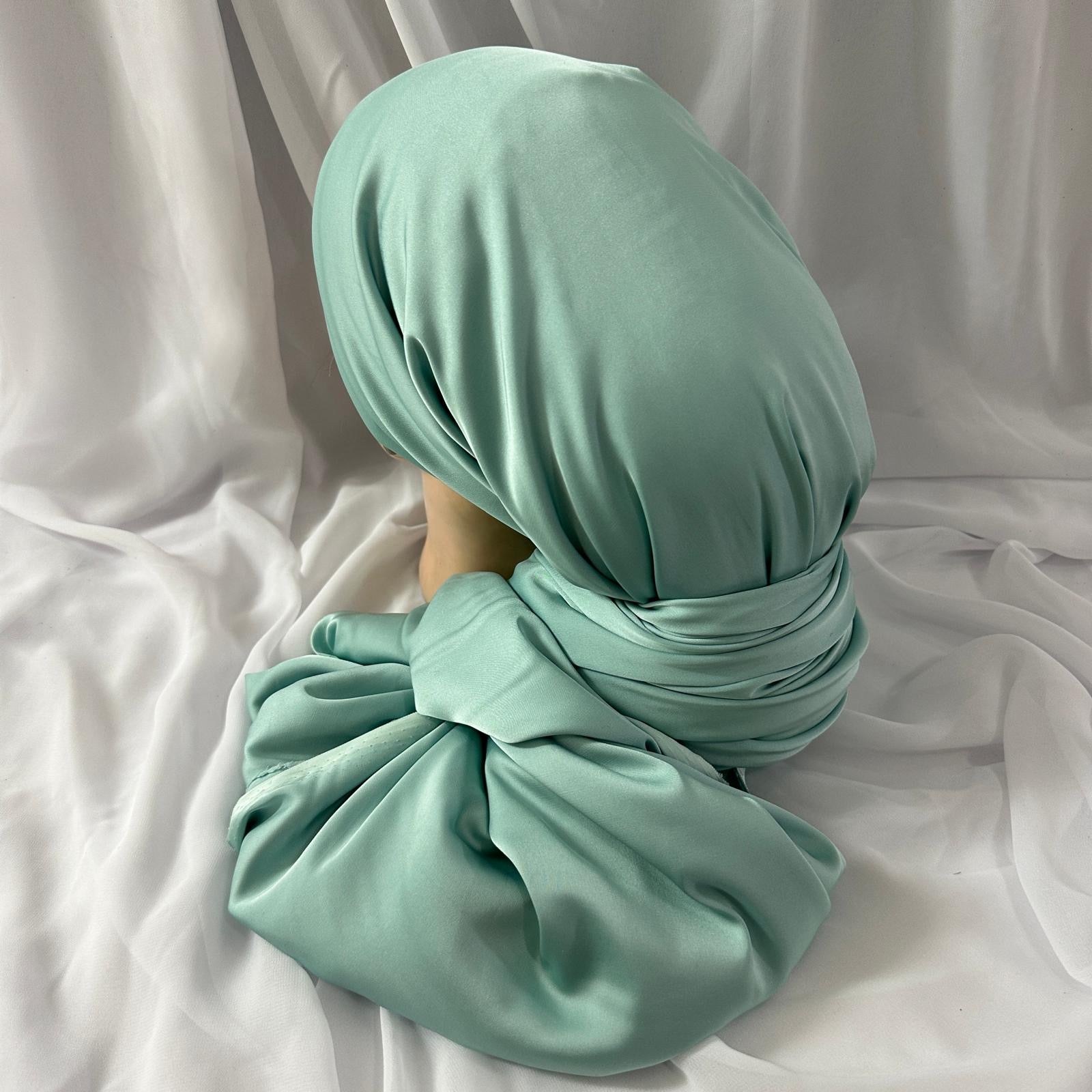 מטפחת לונג סאטן לייקרה איכותי בצבע ירוק מנטה