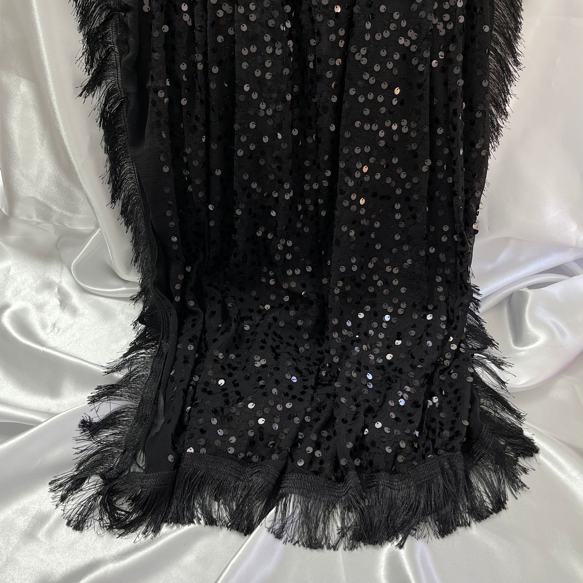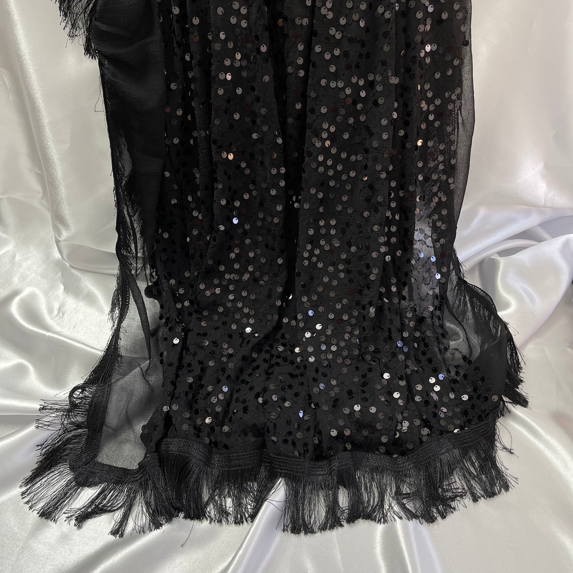 מטפחת לונג פייטים עם פרנזים בצבע שחור