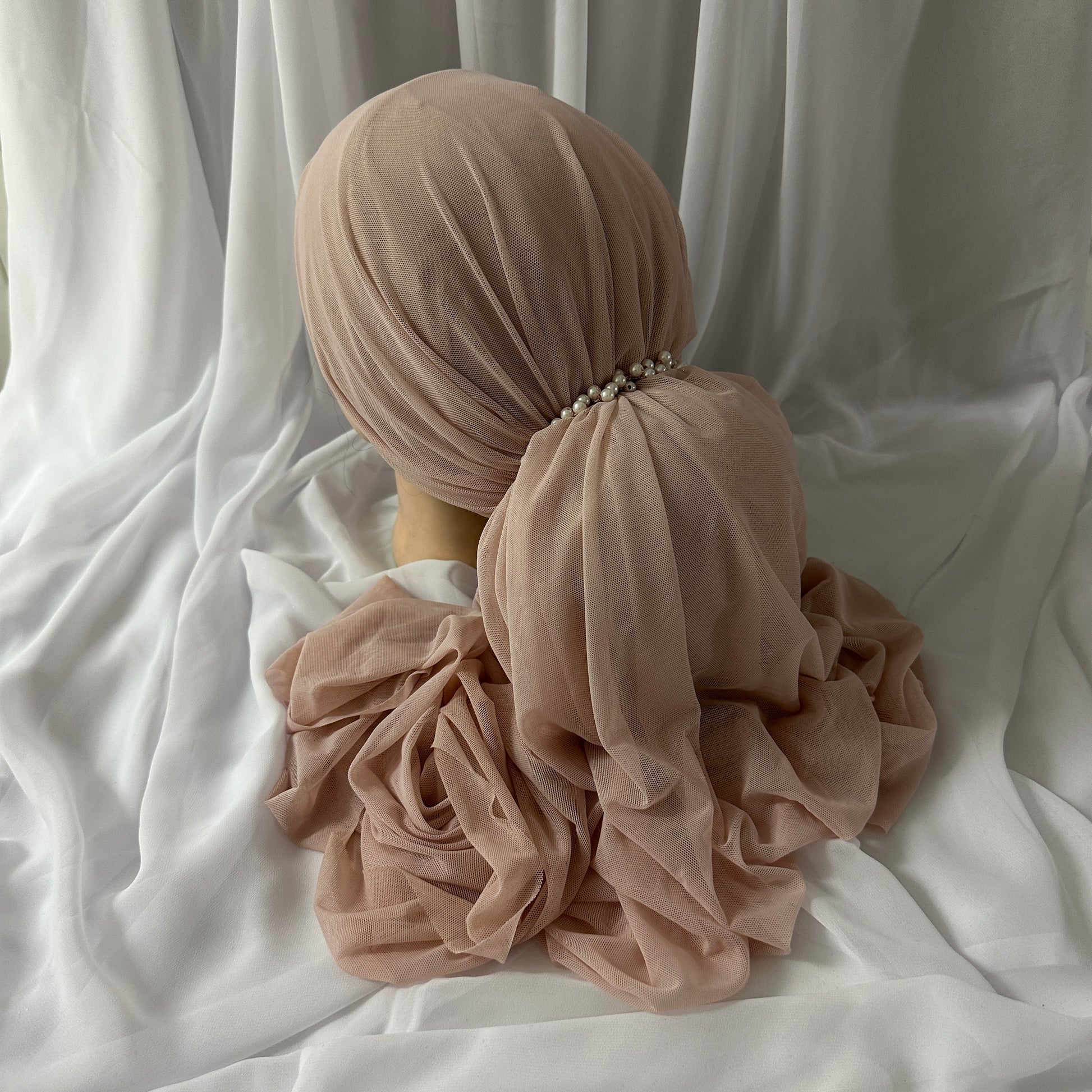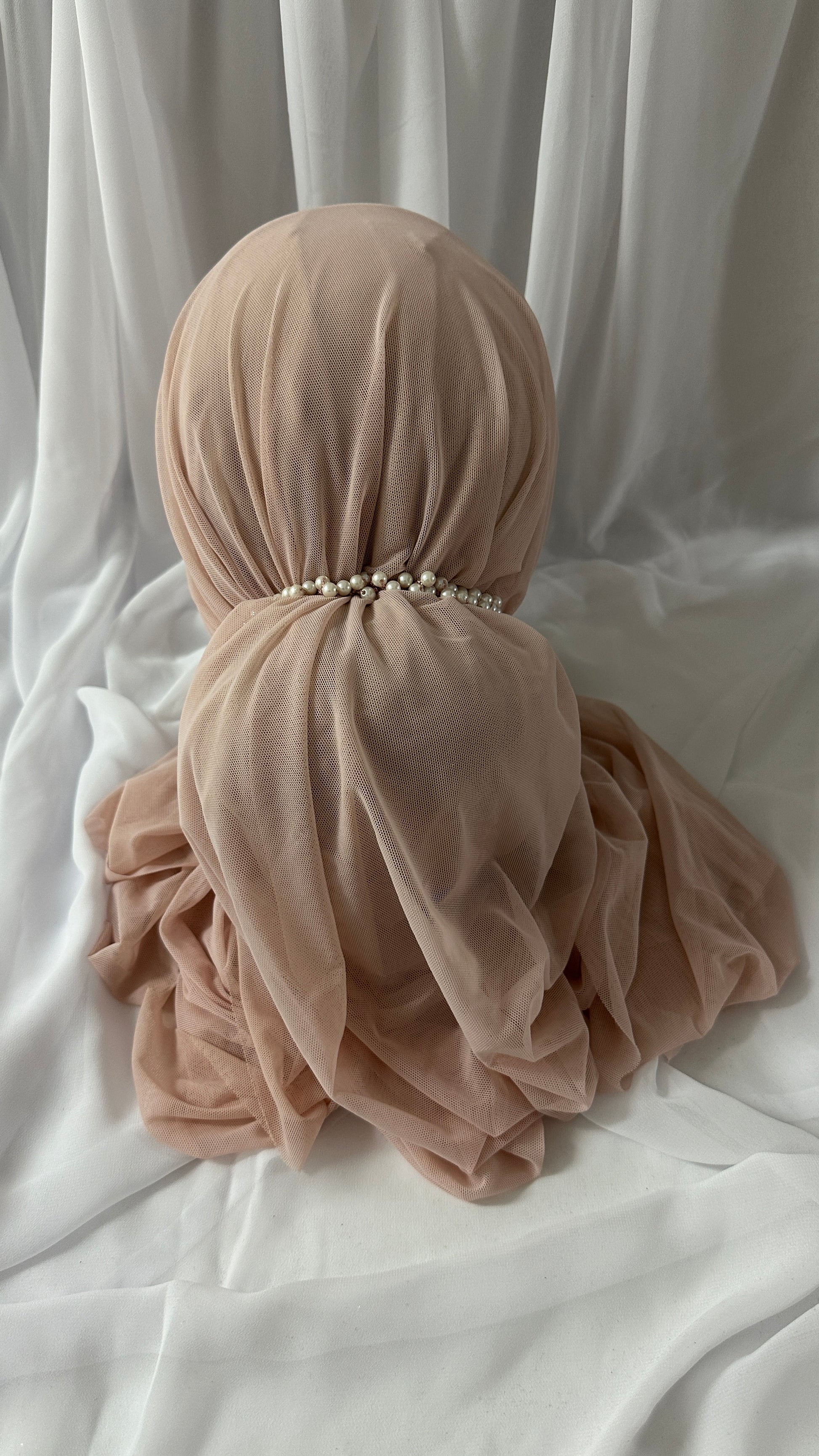 מטפחת מיני לונג רשת משי ורוד פודרה