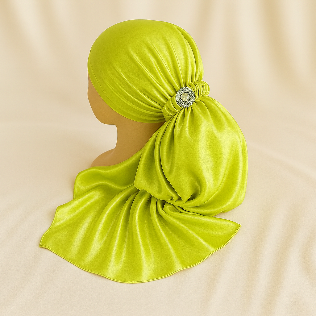מטפחת מרובעת בצבע ירוק לימוני מבריק