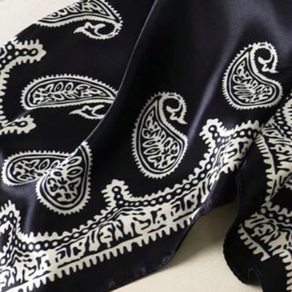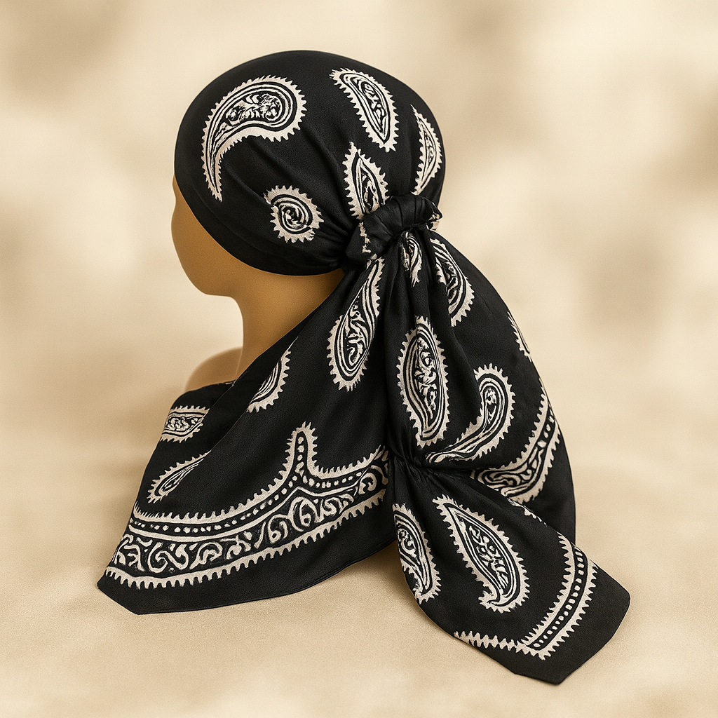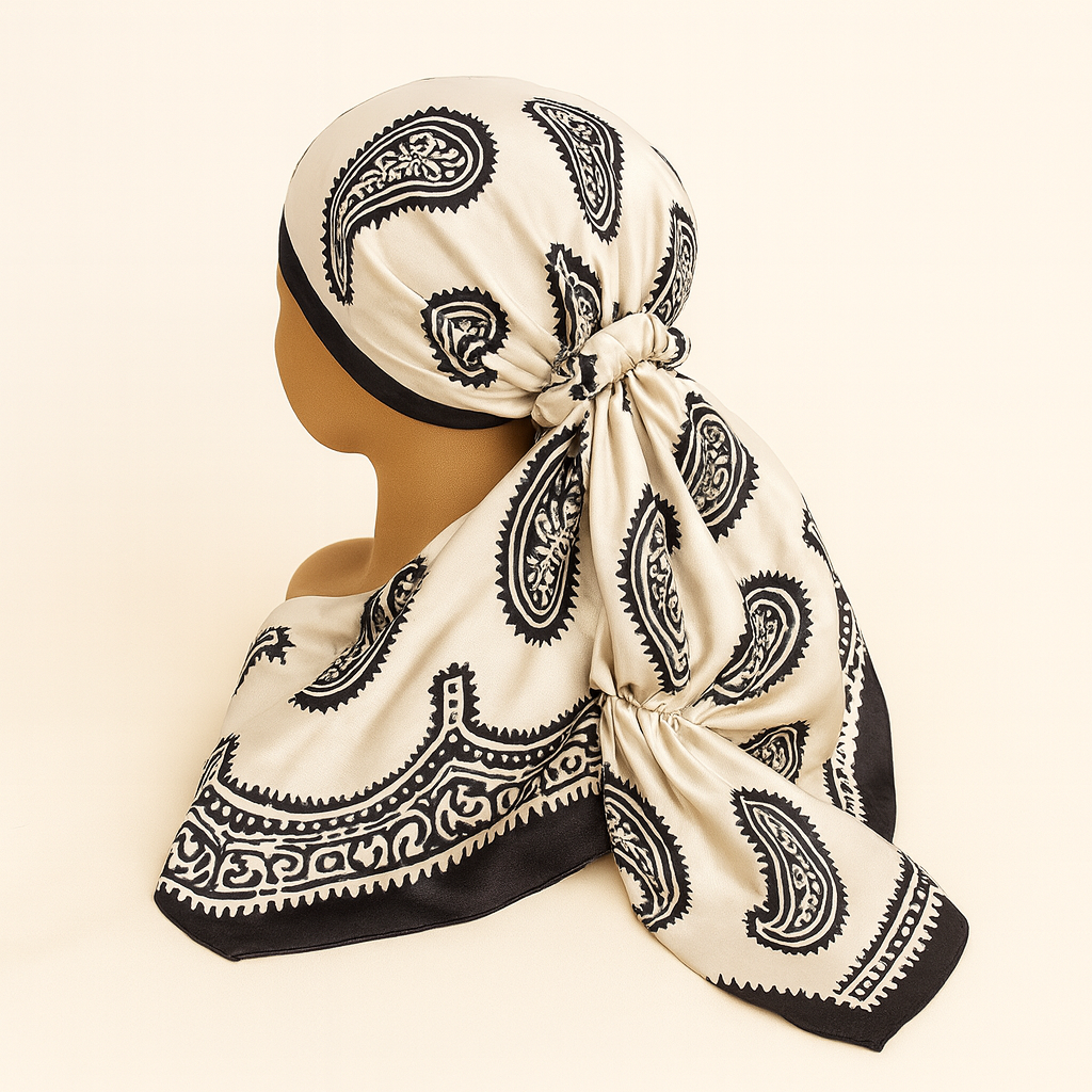 מטפחת מרובעת צבע שחור עיטורים בצבע לבן