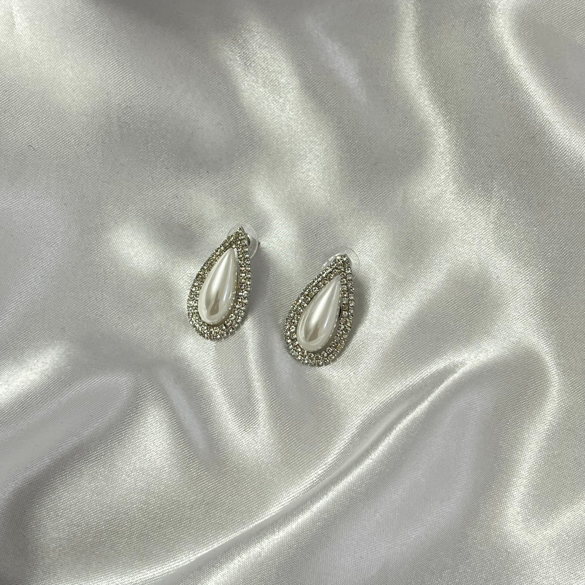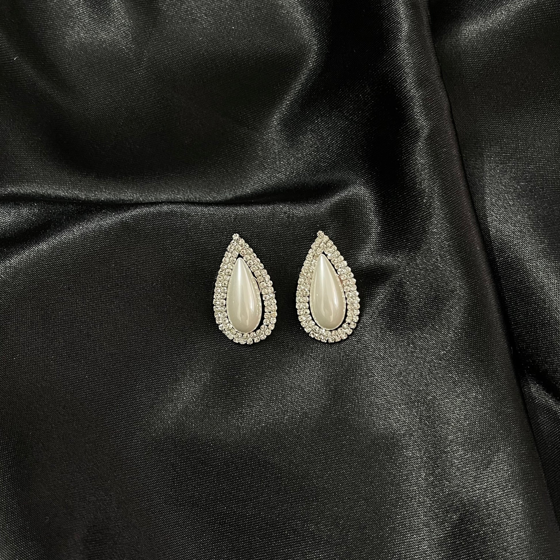 עגילי טיפה פנינה מסגרת משובצת אבנים בצבע כסף
