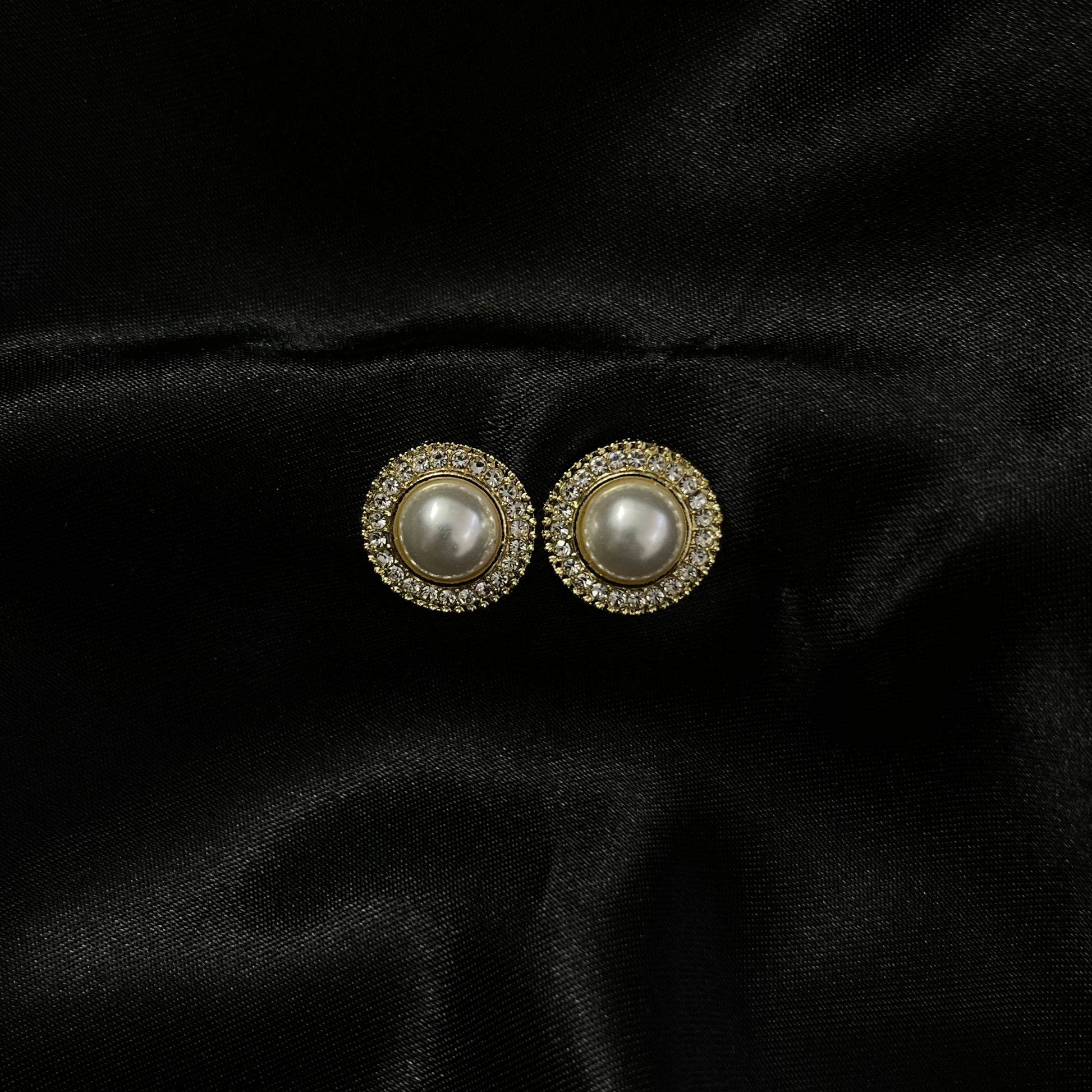 עגילי פנינה מסגרת זהב משובצת