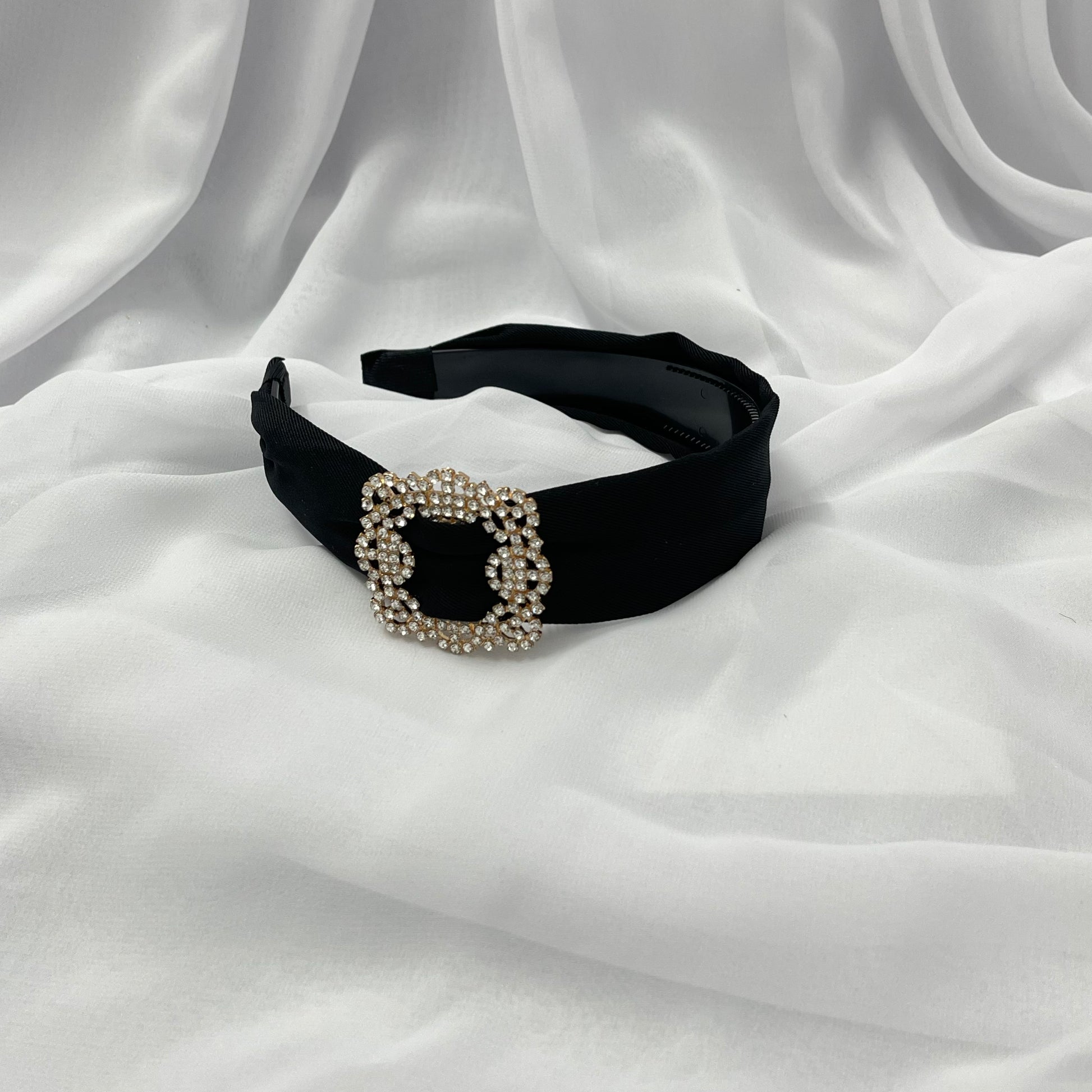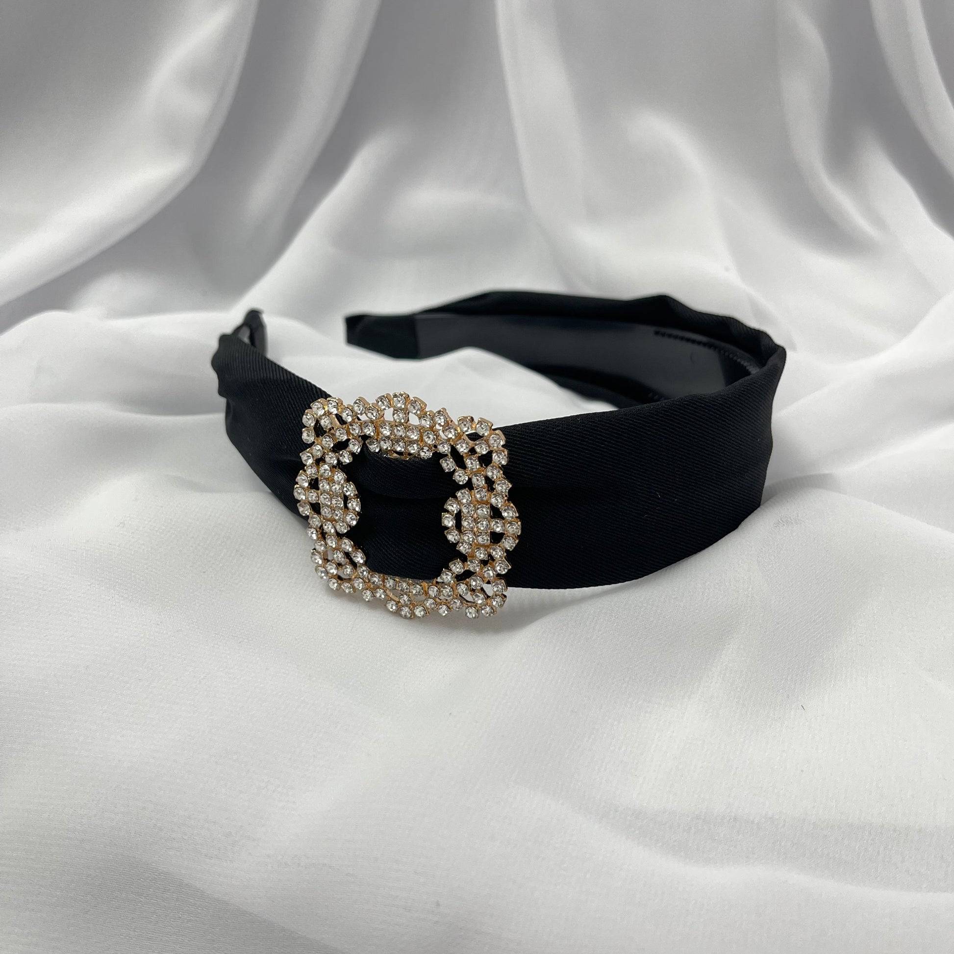 קשת בצבע שחור עם אבזם משובץ אבנים