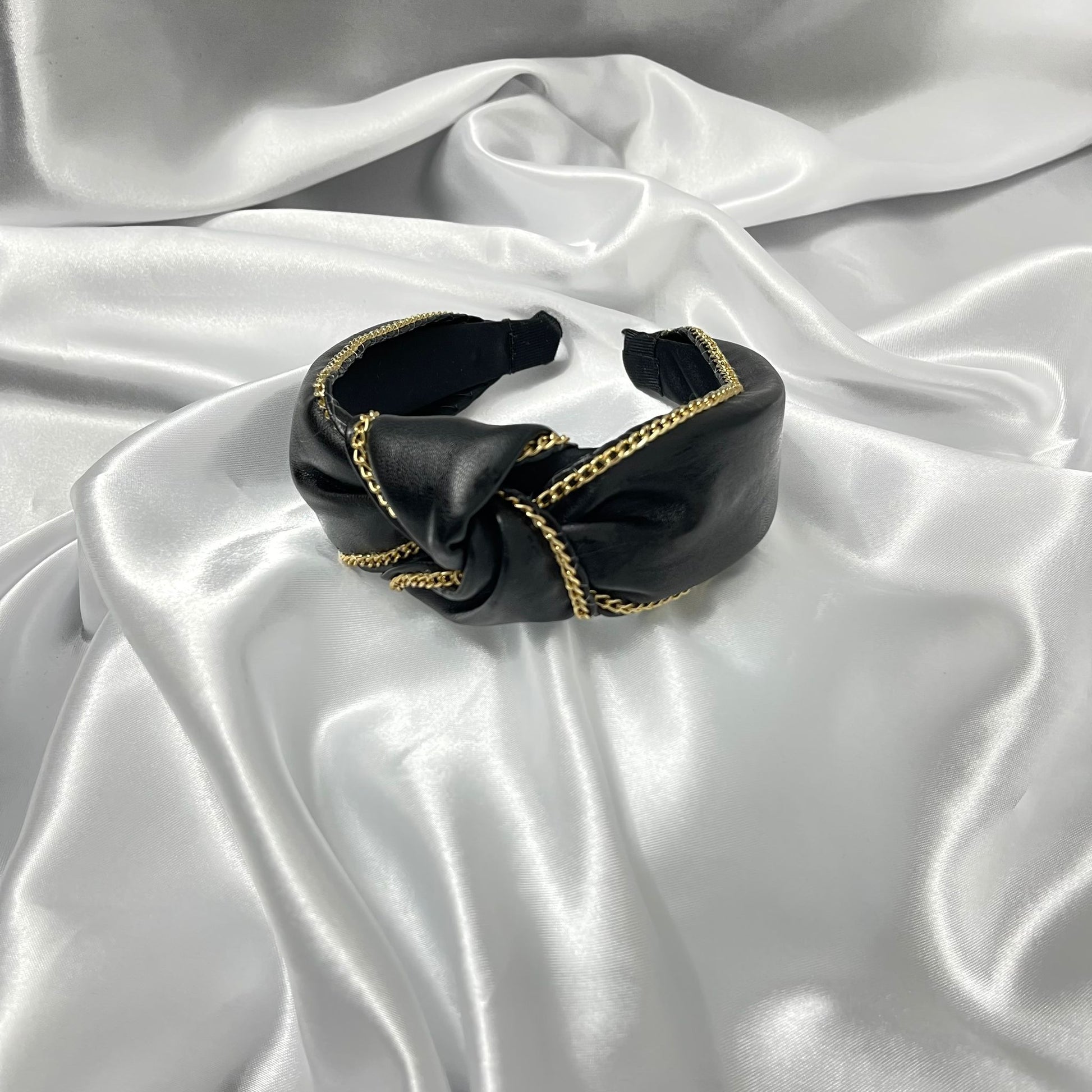 קשת קשר בגוון שחור מעוטרת בשרשרת גוון זהב
