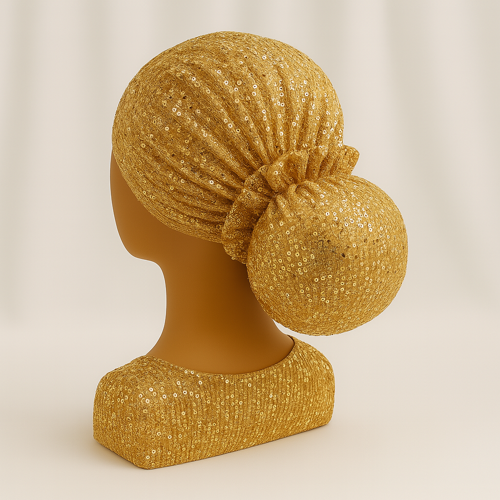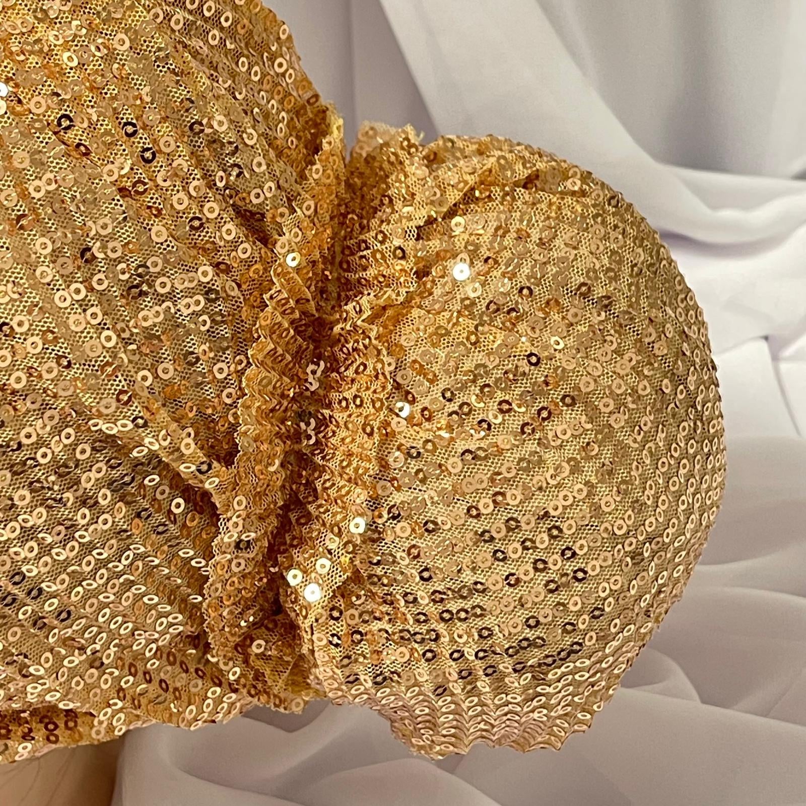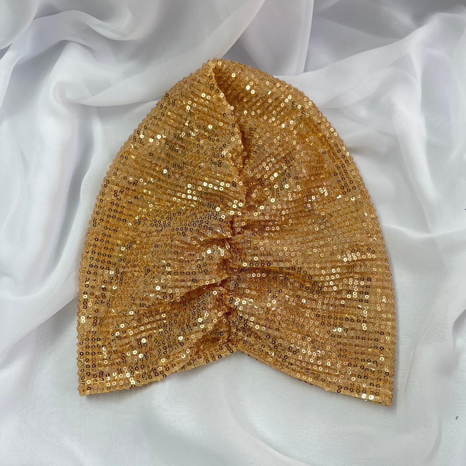 טורבן פייטים בצבע זהב כולל גומיה תואמת
